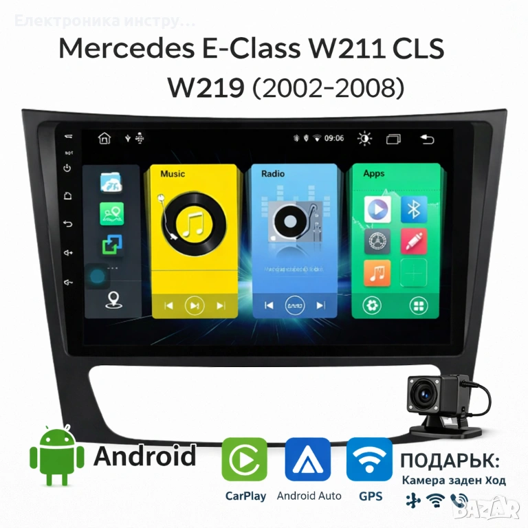 Модерна Android мултимедия с голям тъчскрийн дисплей, която превръща автомобила ви в истински смарт център. Подходяща за Mercedes E-Class W211 и CLS W219 (2002–2008).