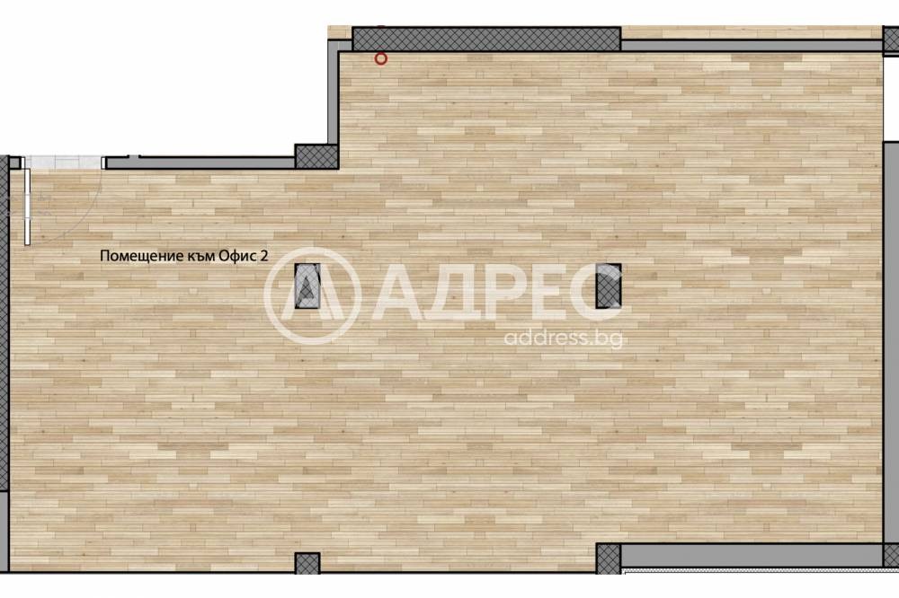 Офис на партерно ниво с площ от 121.37m разпределени по следния начин: зала на партерно ниво с площ от 66,83 m?, складово помещение с площ от 54,54м2. Без комисион.