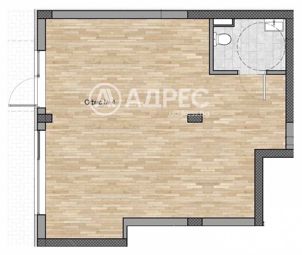 Офис на партерно ниво с площ от 60.23m?, позициониран на партерно ниво със ЗП-51,03. цената е без ддс. Без комисион.