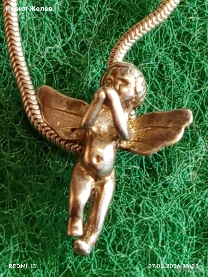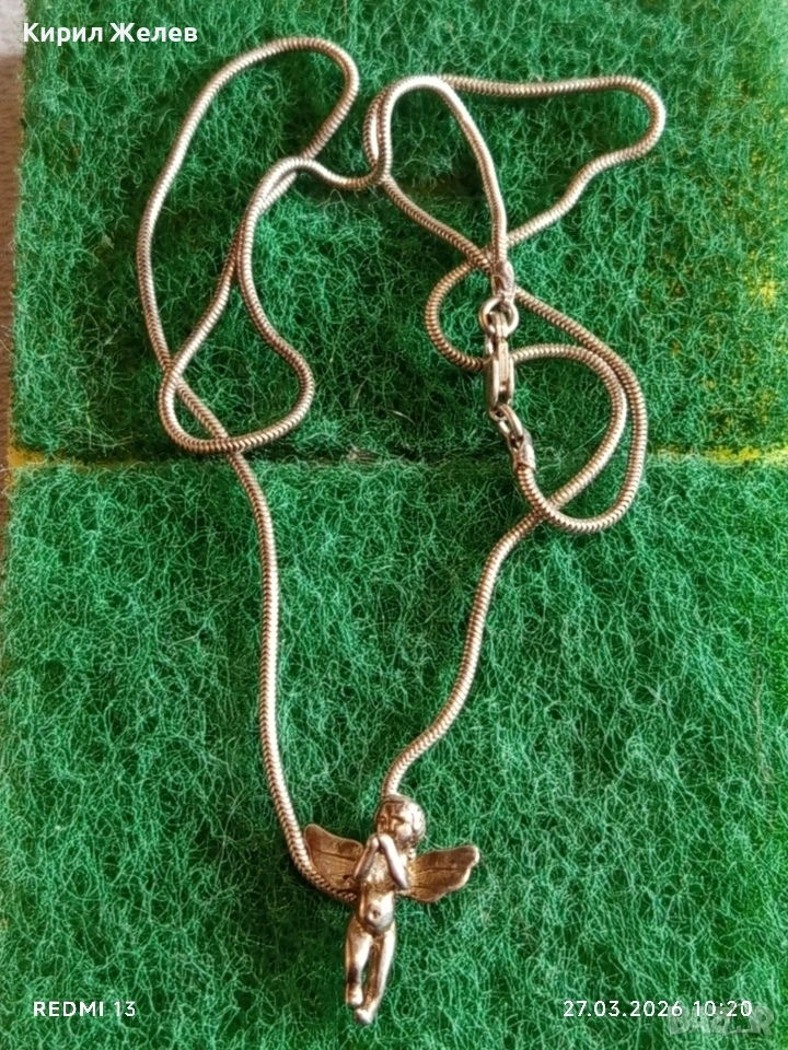 Сребърен синджир плетка тип змийска кожа с висулка ангелче 54181