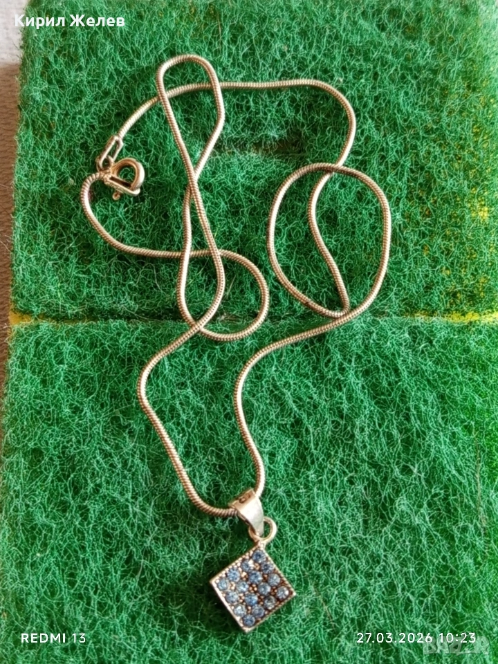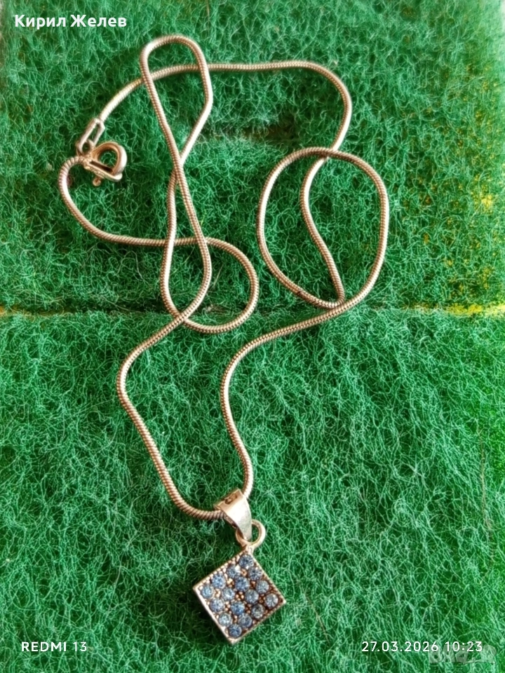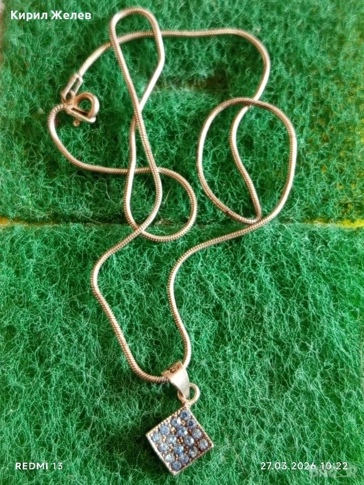 Сребърен синджир с висулка с инкрустирани кристали Аквамарин 37635