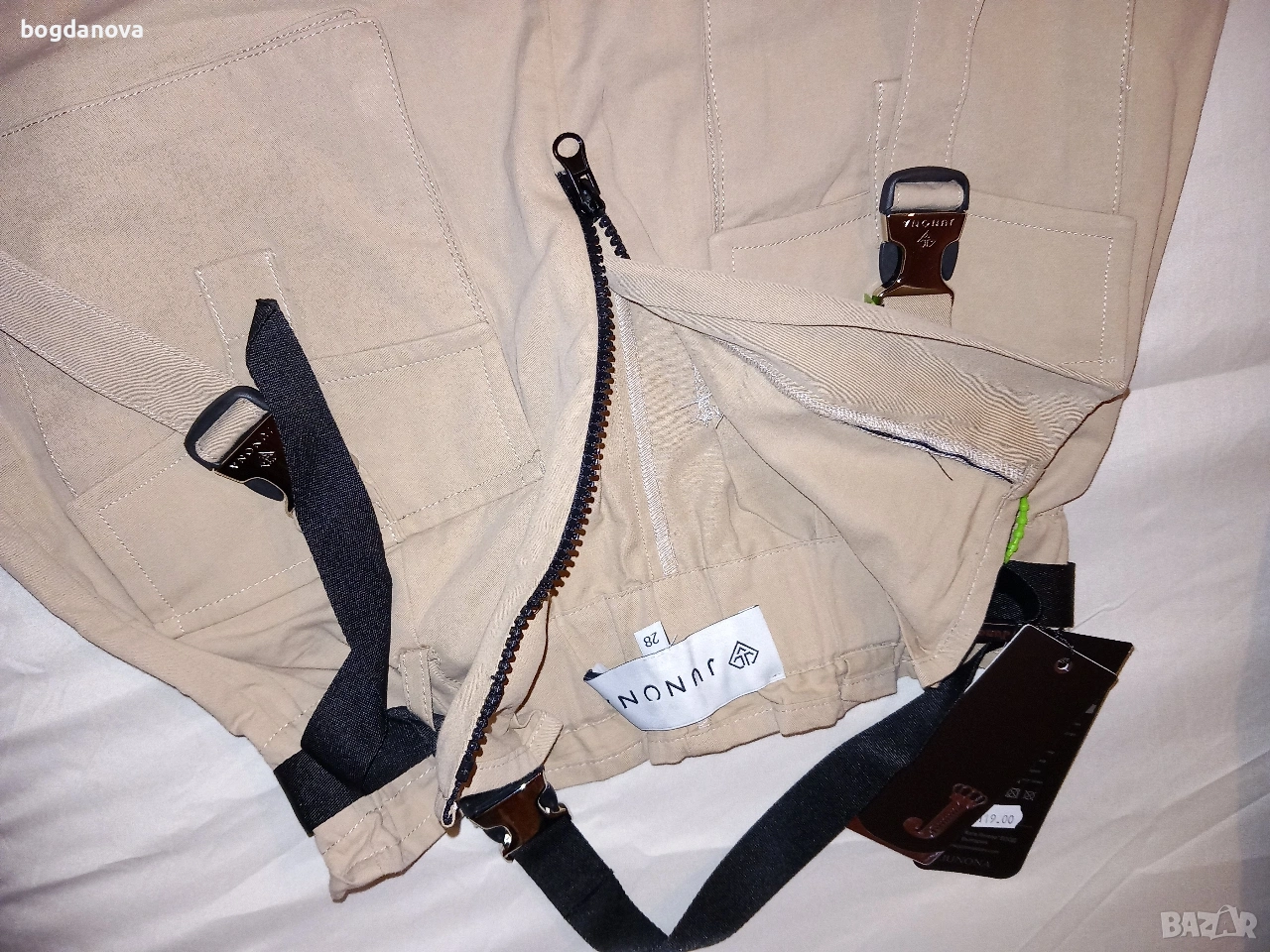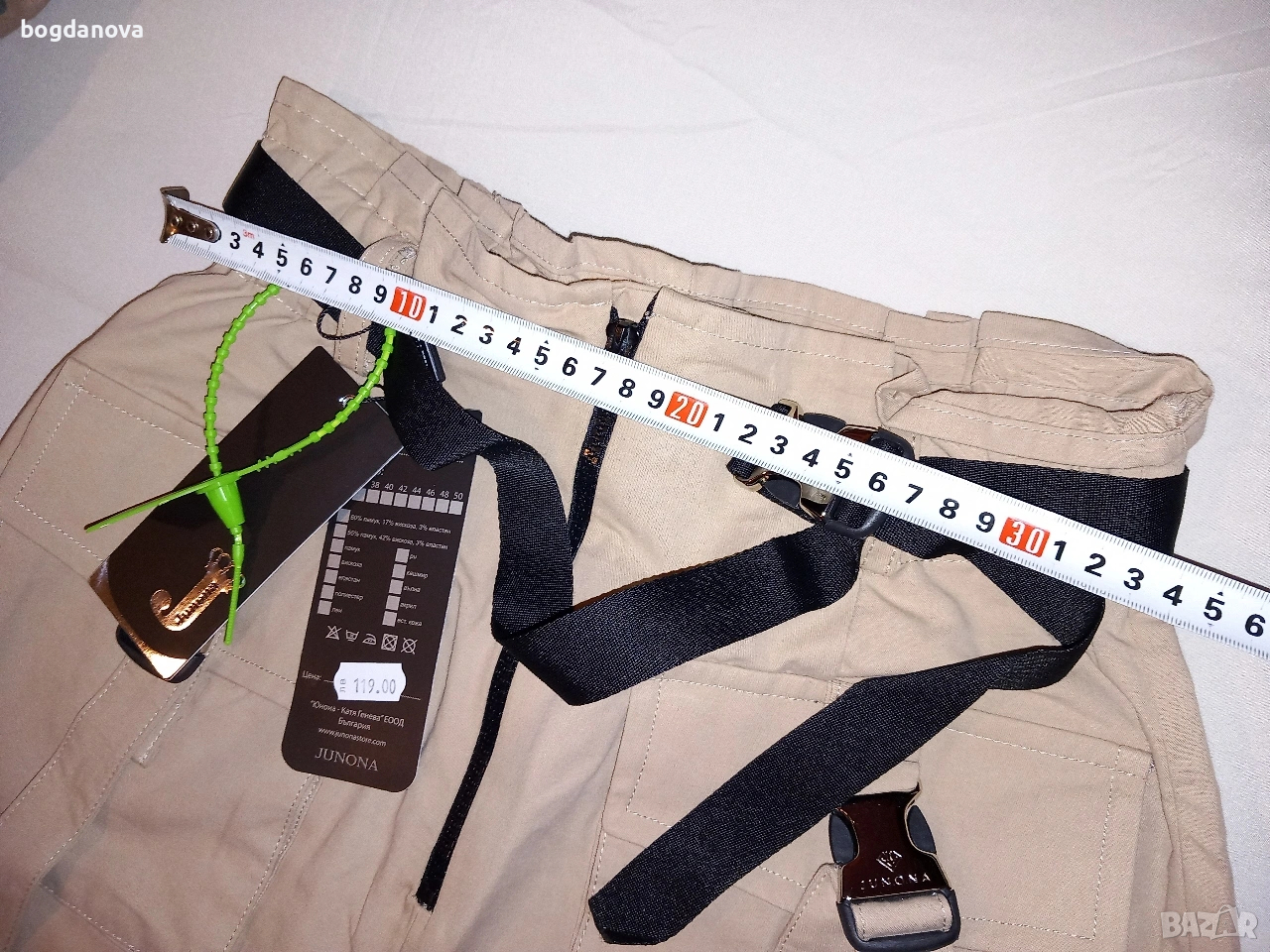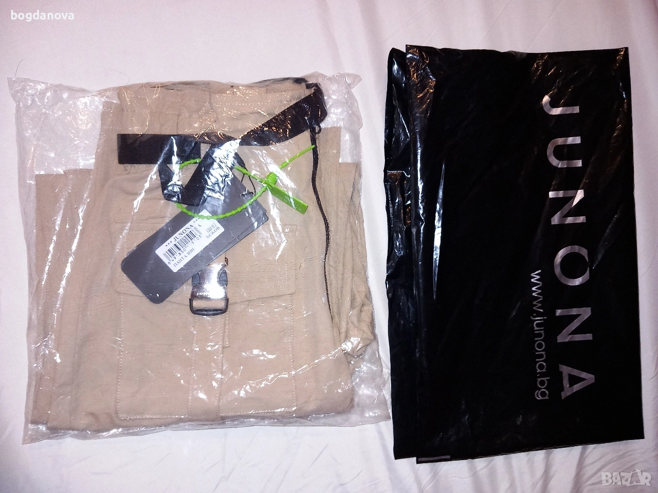 Спортен панталон на Junona/Юнона, с етикети. Нов, неносен. Стилен и удобен за ежедневие, бежов цвят. По етикет размер 28. Няма еластичност и според мен е подходящ за С-М размер. Ориентирайте се по измерването. Подходящ е и за подарък, с опаковка. Може лично предаване за София или с куриер с преглед и тест. Крайна цена.