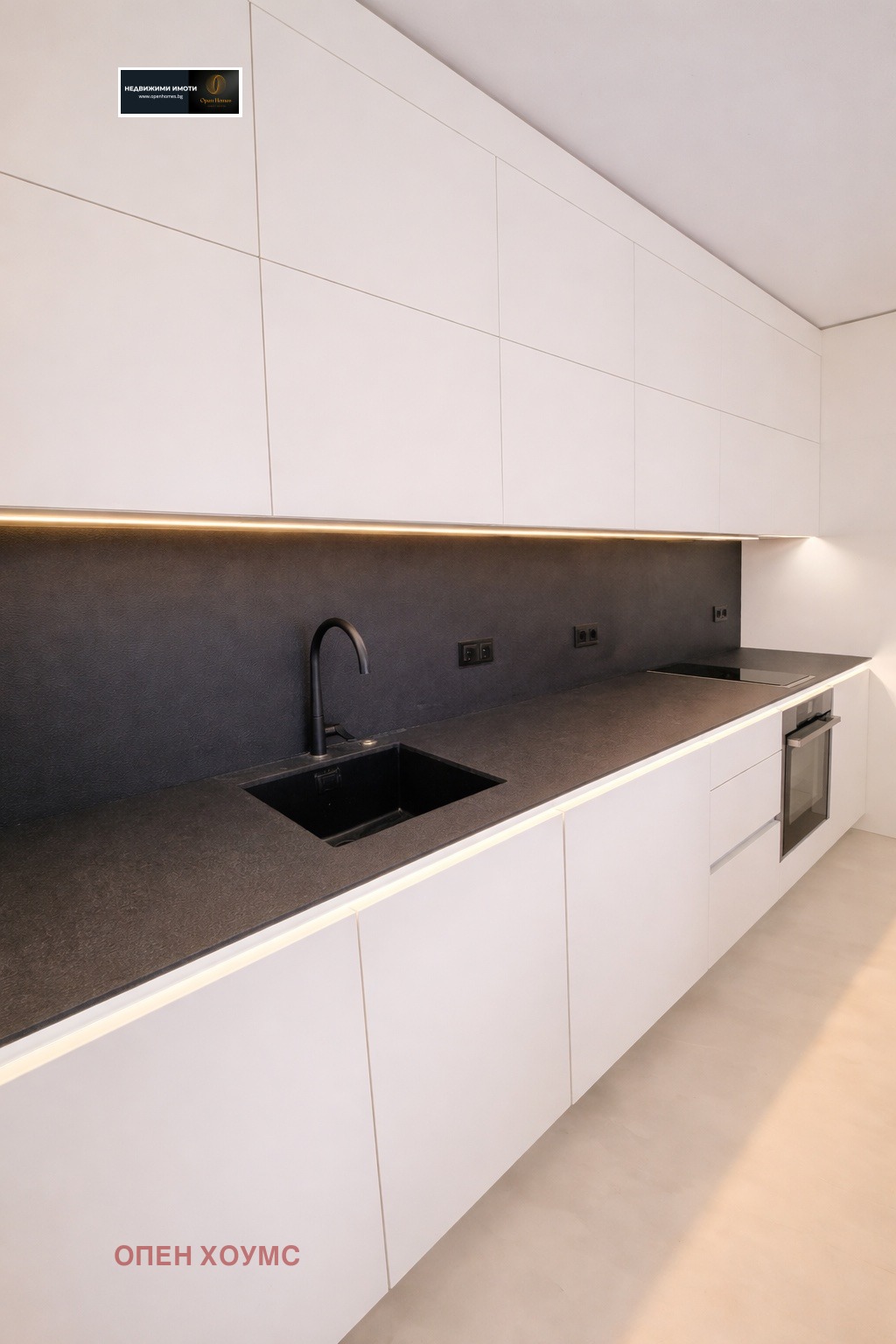 Интериорът който впечатлява с чисти линии и дизайнерски мебели по индивидуален проект, създаващи усещане за простор и чистота, 60 кв. м. отлично организирано пространство с четирикрилен гардероб.