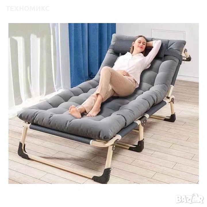 Сгъваемо туристическо легло, къмпинг шезлонг 180 см с възглавница