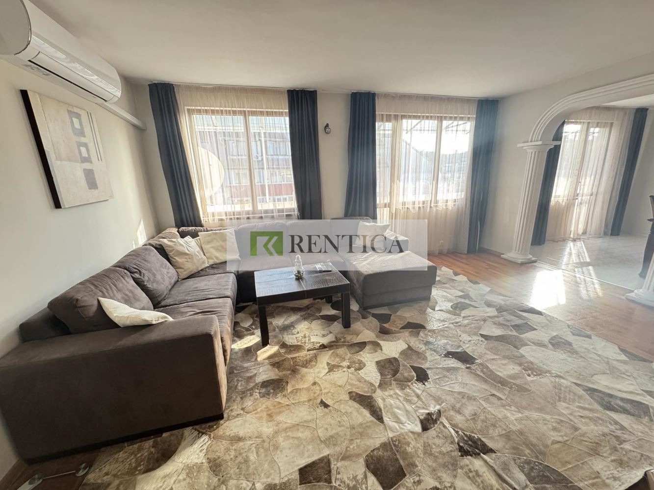 ОФЕРТА 8388 ✅ Rentica.bg предлага под наем, изключително ПРОСТОРЕН, съвременно обзаведен апартамент с ДВЕ СПАЛНИ, находящ се в центъра на град Варна, в близост до Синия пазар и Операта. Състои се от коридор, голяма и светла всекидневна, кухня /хладилник с фризер, пералня,съдомиялна, вградена микровълнова/, трапезария, две спални всяка от тях разполага със собствена баня с тоалет и две големи тераси по 11 м. Напълно оборудван и обзаведен. Отоплението е с климатик. Отдава се за дългосрочно наемане.
