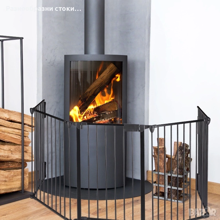 Черна метална ограда за камина, идеална за защита на деца и домашни любимци. Изключително стабилна и здрава.