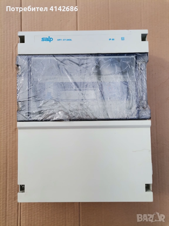 Здравейте, продавам електрическо табло марка Saip модел CT 24GL. Корпуса на таблото е от пластмаса, на цвят е светлосиво. Отпред има прозрачна вратичка, а размерите са следните - височина 37,5 см., ширина 28,5 см., степен на влагозащита IP 55. Таблото е оборудвано с шина, кабели и 1 брой предпазител CHINT NB1-63 C6. Цена 20 евро.