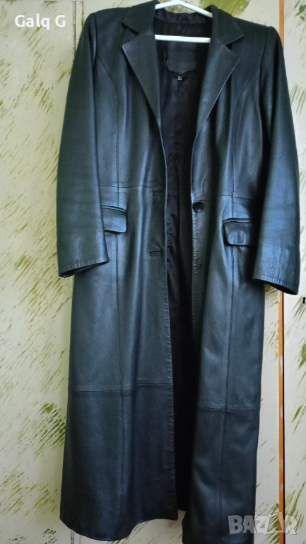 Черните манта са естествена кожа . Едното е до коляно. Закопчава се с цип .