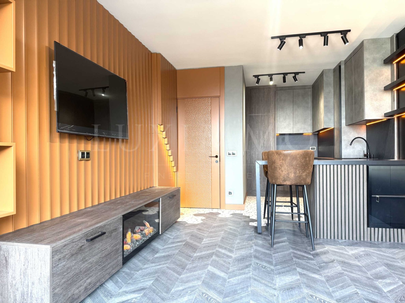 Апартаментът се намира в нова сграда с Акт 16 от 2024 г. Предлага се завършен със следните материали: