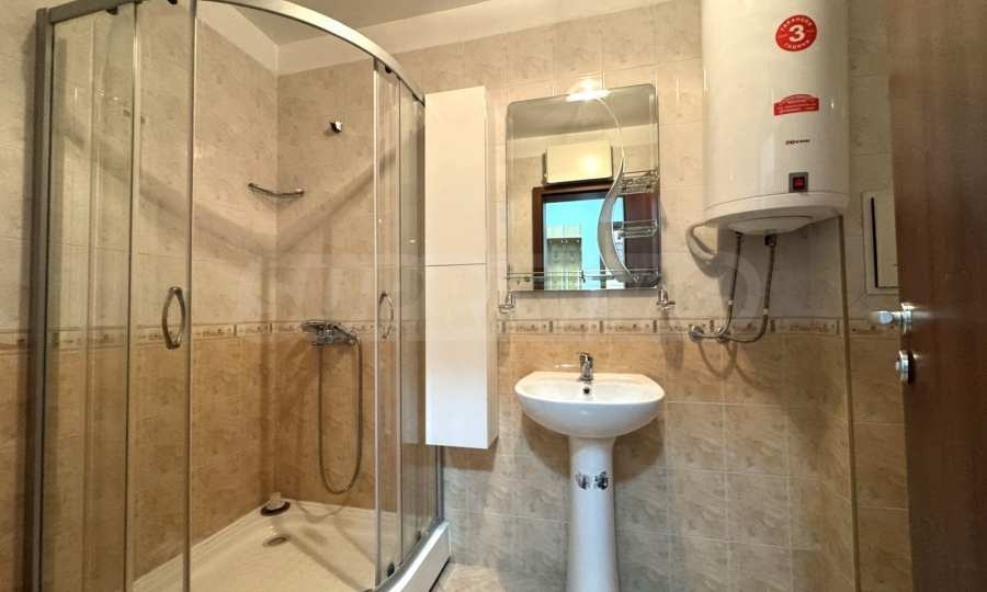 Баня с с душ кабина, тоалетна, мивка и бойлер.