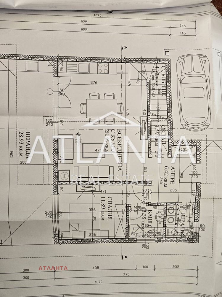 втори етаж: две спални, баня с тоалет, тераса.