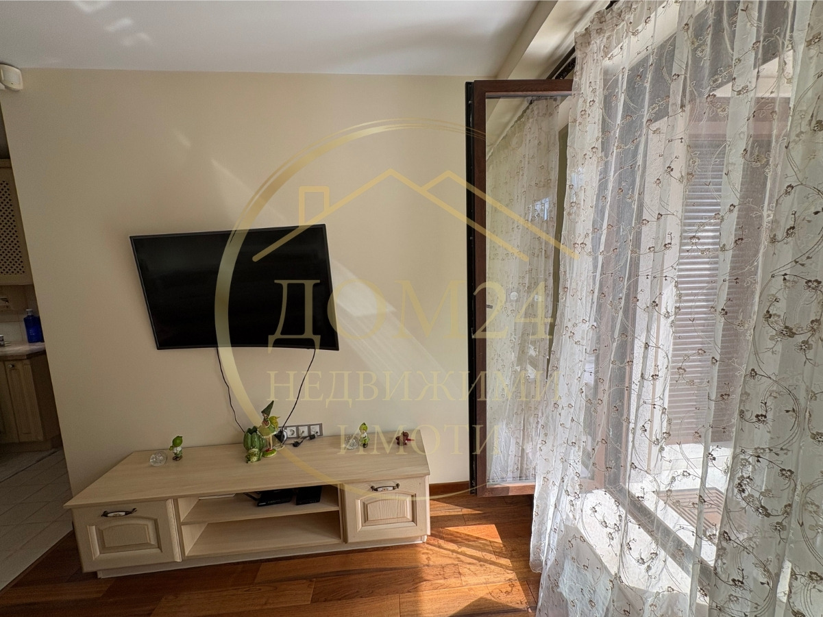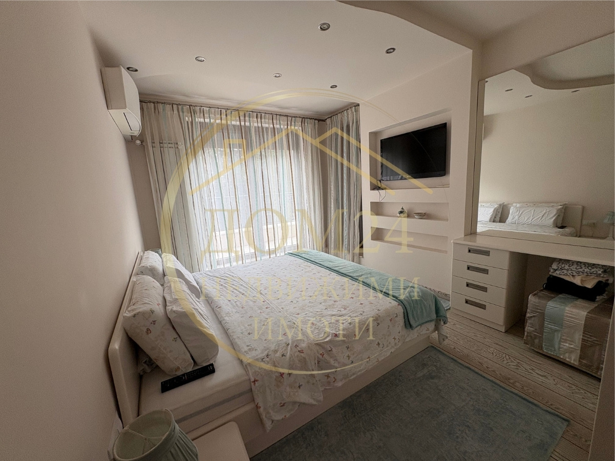 Апартаментът е луксозно обзаведен с висококачествени мебели по поръчка и модерни електроуреди, съчетаващи стил, функционалност и уют.