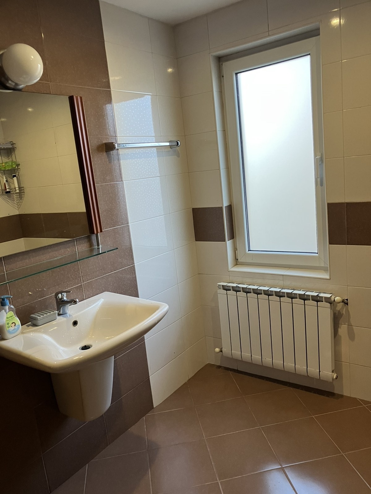 Продава се просторен и частично обзаведен тристаен апартамент разположен в нова жилищна сграда в близост до училище, спирка на градския транспорт и на пешеходно разстояние от големи магазини и основни булеварди в гр.Враца. Жилището се намира на първи жилищен етаж като под него на партера има разположени търговски площи и гаражи. Апартаментът е полуобзаведен и разполага с две спални, голяма всекидневна с кухня, баня с тоалетна и отделна тоалетна. Дълъг коридор свързва всички помещения, а от двете спални и всекидневната се излиза на обща тераса. От кухненския кът на всекидневната има достъп до друга, втора тераса. Жилището е просторно, в добро състояние и разполага с ТЕЦ. Кооперацията в която се намира е с добре поддържани общи части с ограничен достъп. Освен наличните гаражи и паркоместа, в района може да се паркира и в околностността на близките сгради. На 7-8 минути пешеходно разстояние от апартамента се намират два големи хипермаркета, множество малки търговски обекти, спирки на градския транспорт, жп.гара. Мястото е комуникативно и с бърз автомобилен достъп до главните пътни артерии на гр.Враца като в същото време се намира на тиха уличка без особено голям автомобилен трафик. Просторен апартамент с добра локация и потенциал да се превърне в чудесен нов дом.