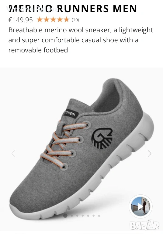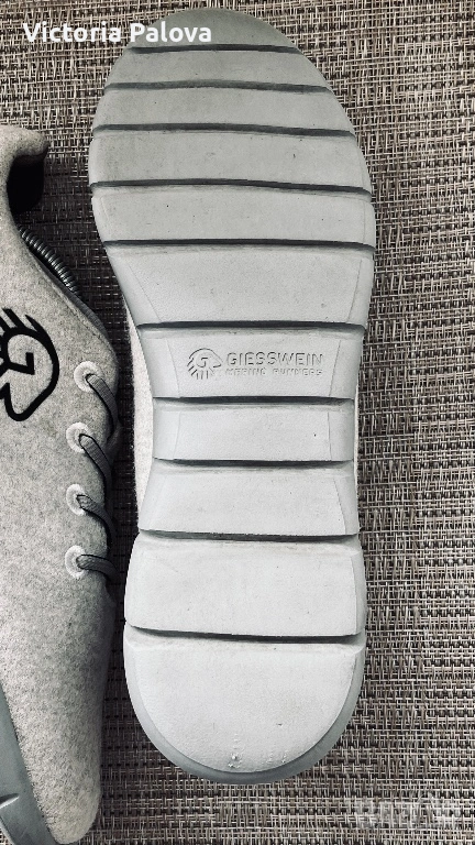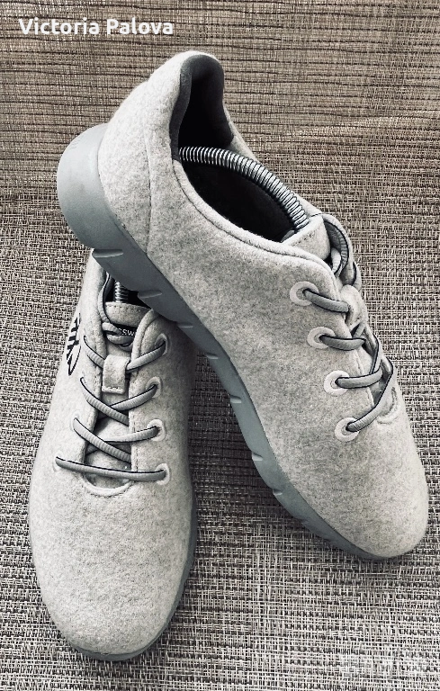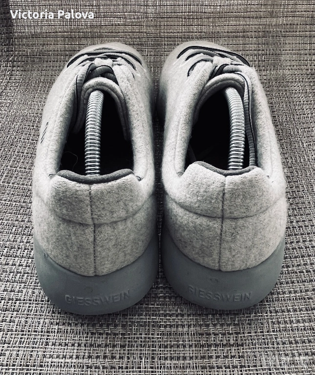 Оригинални Giesswein Merino Runner, размер 43, обувани само веднъж. Това е висок клас модел, създаден с фокус върху максимален комфорт и лекота – обувки, които буквално не се усещат на крака. Изработени от естествена мериносова вълна, те са изключително меки, дишащи и приятно обгръщат стъпалото, като се напасват по форма и дават усещане като „втора кожа“. Подметката е лека, гъвкава и омекотяваща, изработена от EVA материал, който поема натоварването при ходене и прави всяка стъпка по-мека и стабилна. Тя е с добро сцепление и комфорт при продължително носене, което прави модела идеален както за ежедневие, така и за дълги разходки. Вътрешната стелка също допринася за удобството, като осигурява допълнителна опора и мекота. Обувките са изключително леки (около 260 г), което ги прави перфектни за динамично ежедневие и пътуване. Материята регулира температурата – топлят през по-хладно време и охлаждат през топло, като същевременно не задържат миризми и влага. Моделът е рядък и почти не се среща в България, с модерен и минималистичен дизайн, отличава се от масовите марки. Реалната им цена е около 300 лв, скъпи премиум обувки - австрийска технология и мериносова вълна. Стелка - 28-28,5 см.