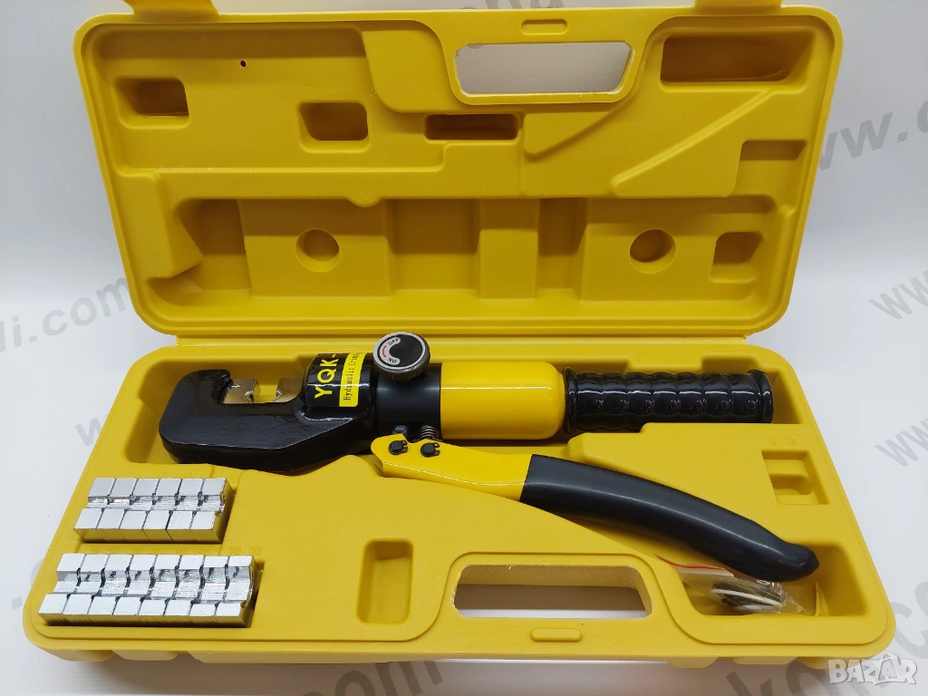 -Комплектът съдържа сменяеми матрици за различни размери на проводниците.