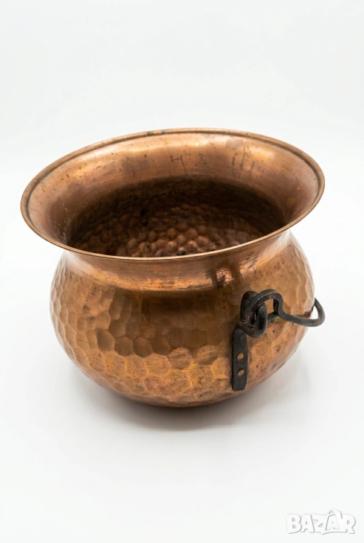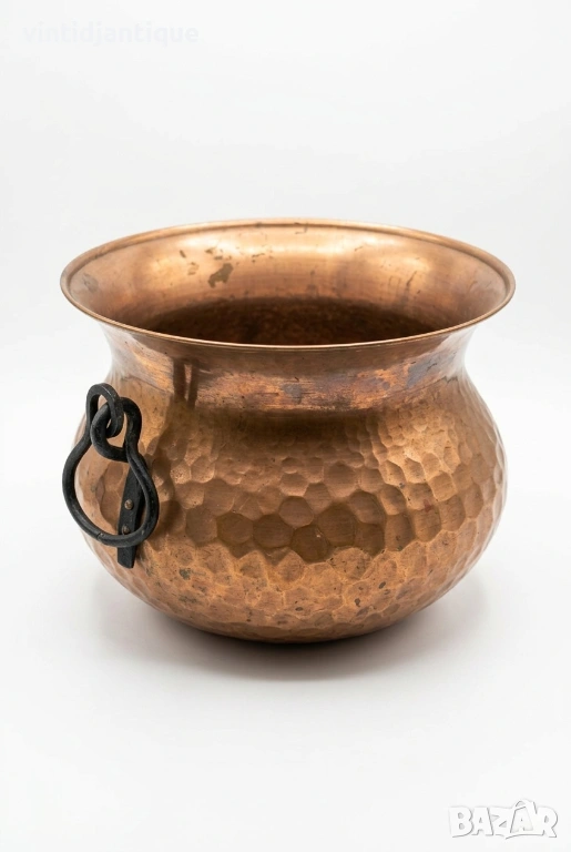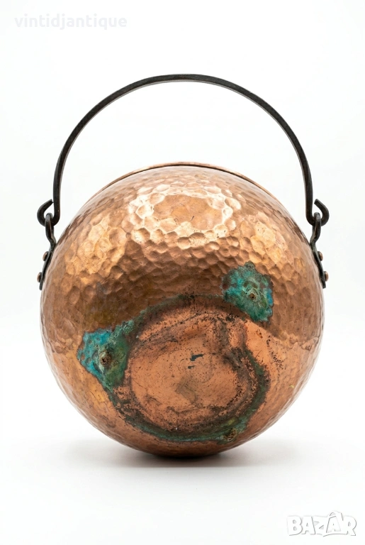 Античен ръчно изчукан меден казан с патина → Обява 53995336