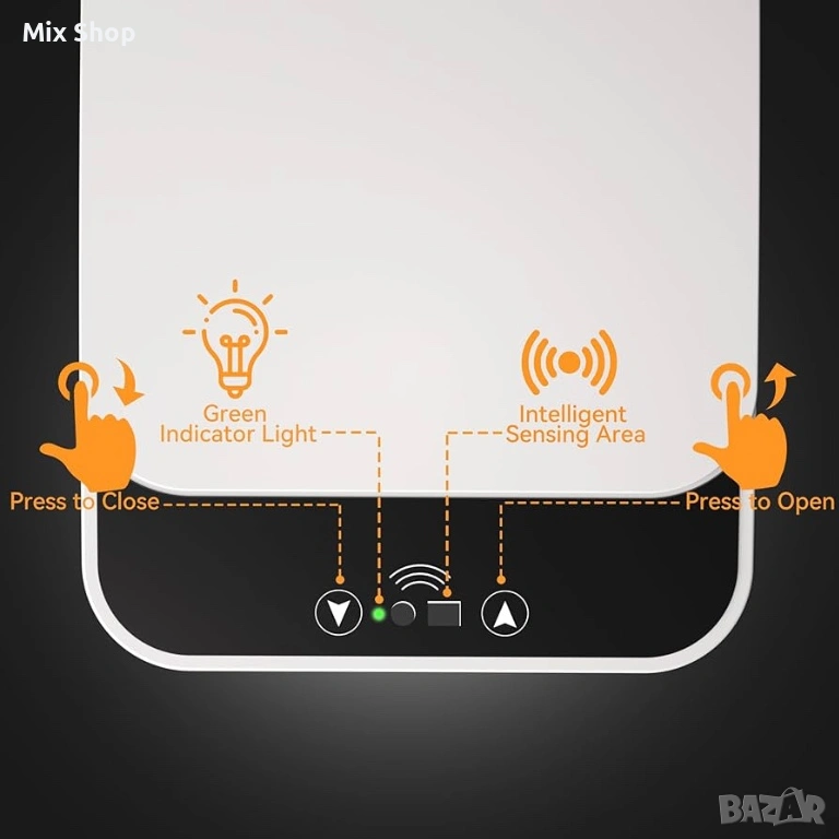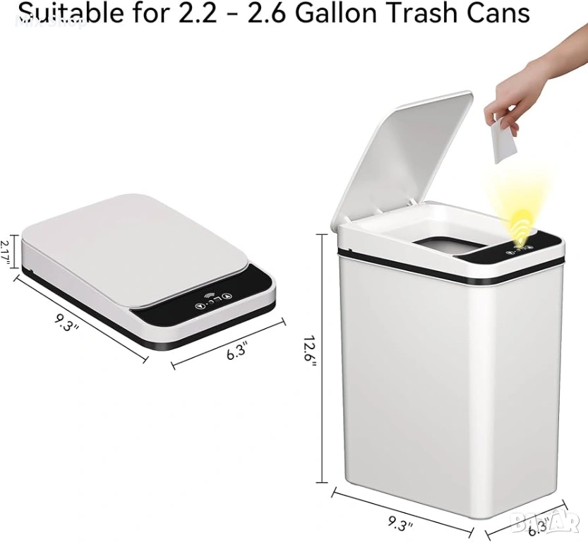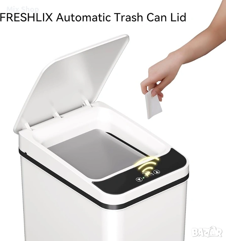 Усъвършенствана технология на сензор за движение: Отваря се мигновено с махване с ръка. Не е необходим физически контакт за хигиенично изхвърляне на отпадъци.