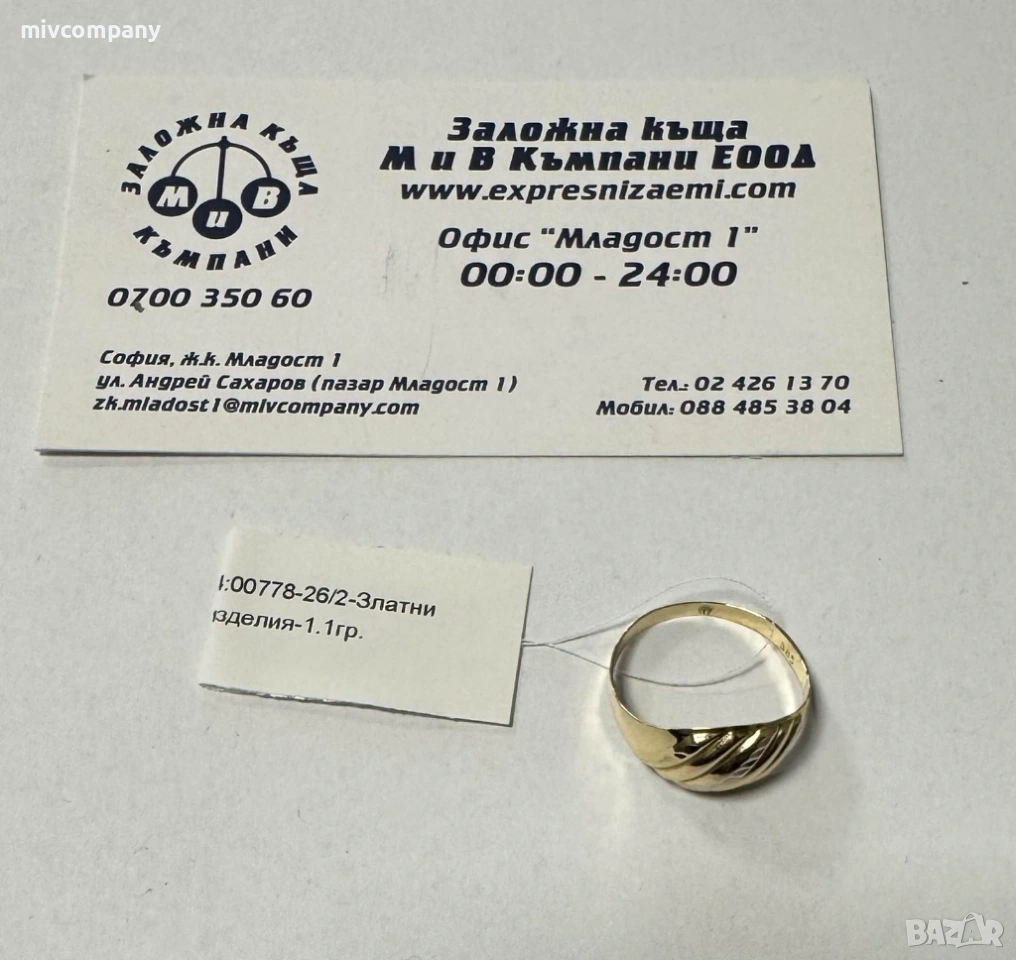 Златен пръстен 1.10гр. → Обява 53995515
