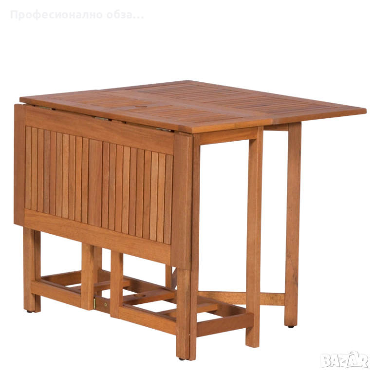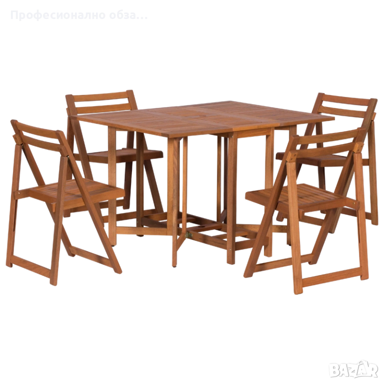 Наличен на скалд комплект от сгъваема дървена маса с 4 сгъваеми компактни стола.