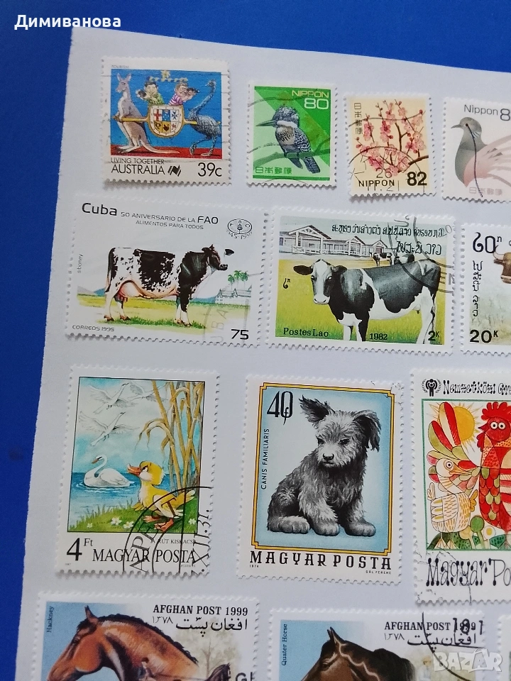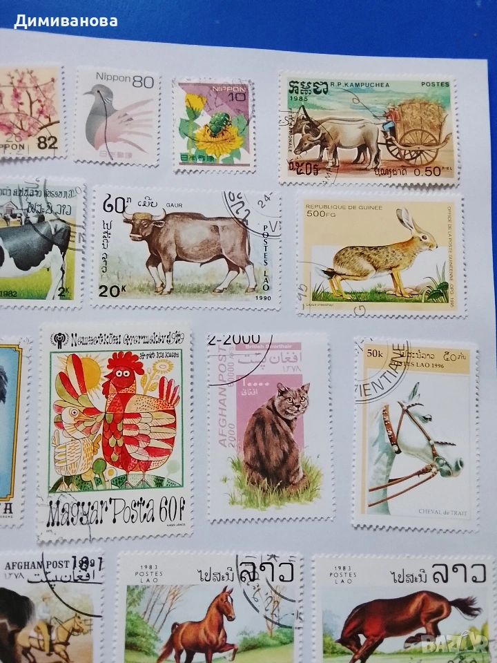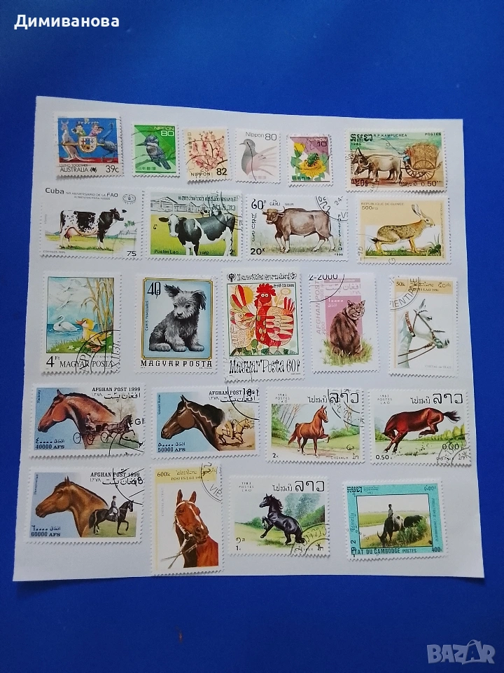 23 пощенски марки (коне, крави) → Обява 53995745