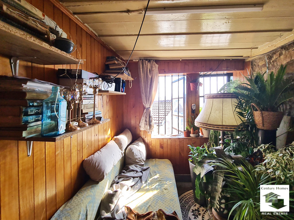 Първият етаж включва дневна с кухненски бокс, спалня, килер, баня с тоалетна и веранда с излаз към улицата. Пространството се нуждае от ремонт и обновяване, което дава възможност за адаптиране според вкуса и нуждите на новия собственик.