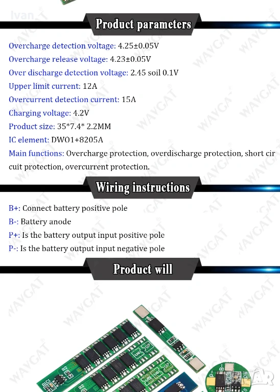 BMS защитен модул за Li-ion батерии 1S, 3.7V, 15A, снимка 1 - Друга електроника - 53996079 BMS защитен модул за Li-ion батерии 1S, 3.7V, 15A, снимка 2 - Друга електроника - 53996079 BMS защитен модул за Li-ion батерии 1S, 3.7V, 15A, снимка 3 - Друга електроника - 53996079 1/3