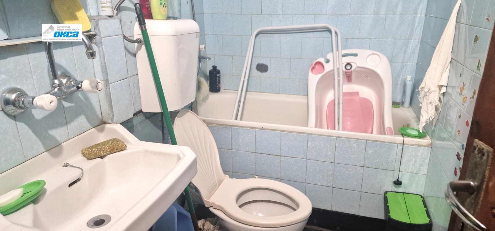 Оферта 2072 - Агенция за недвижими имоти ' ОКСА ' предлага двустаен апартамент на първата спирка до поликлиника и магазини. Състои се от хол, спалня и кухня, баня с тоалетна, тераса. С ТЕЦ , PVC дограма и климатик. Среден апартамент с южно изложение. Обзаведен.