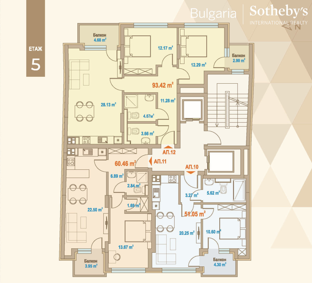 BULGARIA SOTHEBY’S INTERNATIONAL REALTY има удоволствието да Ви представи тристаен апартамент изключителен нов проект, създаден за хора с високи изисквания към средата на живот. 14 етажа и 38 апартамента – двустайни и тристайни, с функционални разпределения. Всички апартаменти в сградата ще се издават до ключ, предлагащи избор от няколко варианта висок клас материали.