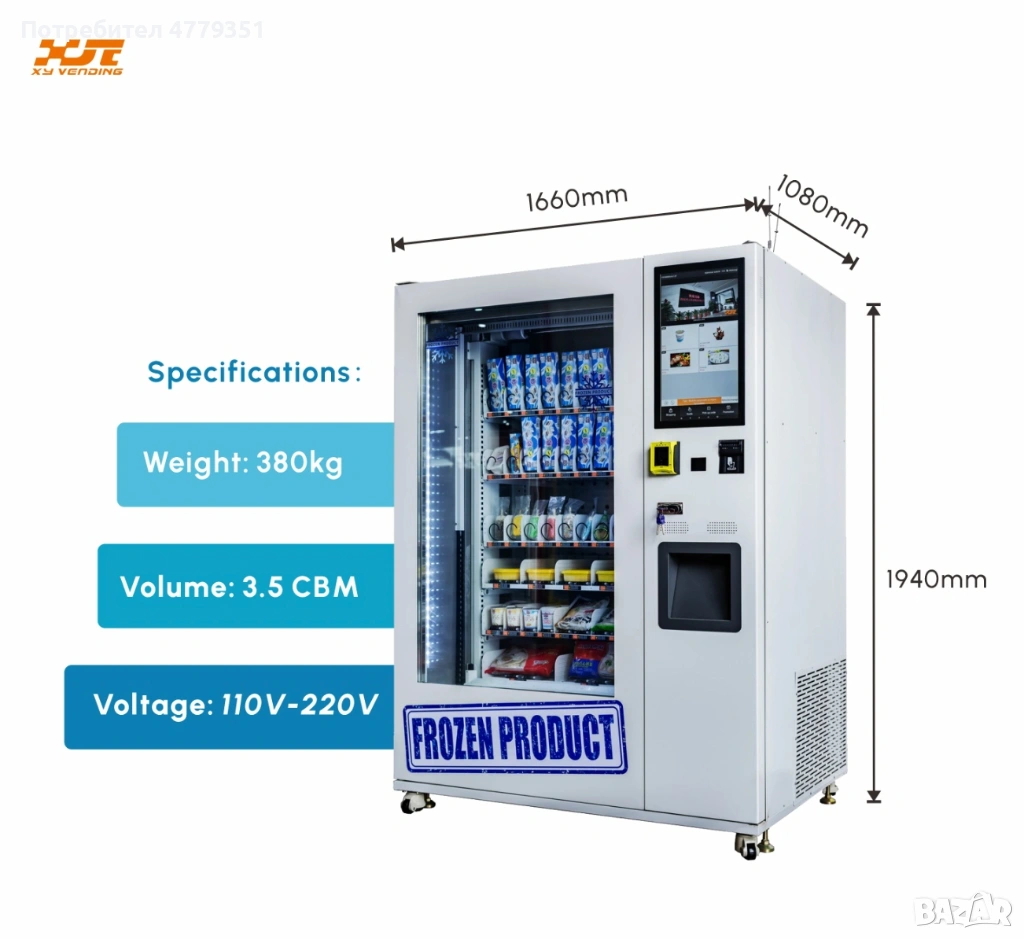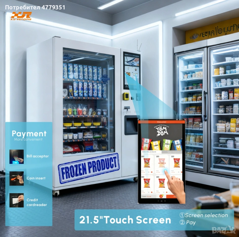 Интелигентен вендинг автомат за замразени продукти, подходящ за продажба на сладолед, замразени храни и специализирани продукти.