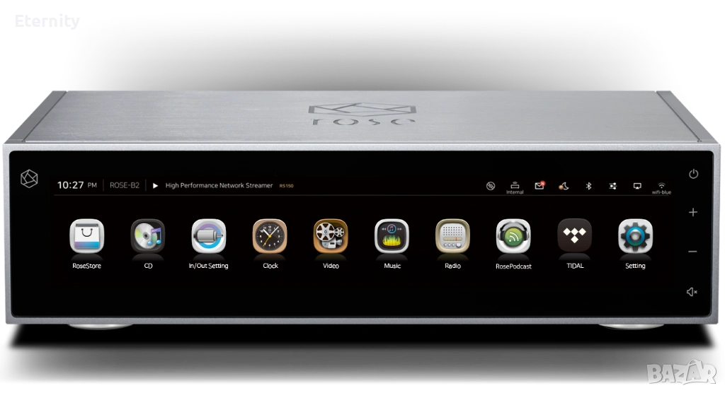 DAC и можете да свържете външни твърди дискове с музика или лесно да инсталирате SSD за съхранение на музика, до която получавате незабавен достъп на големия екран. HiFi Rose RS150B се представя като рог на изобилието от интелигентни решения и осигурява първокласно качество на звука.