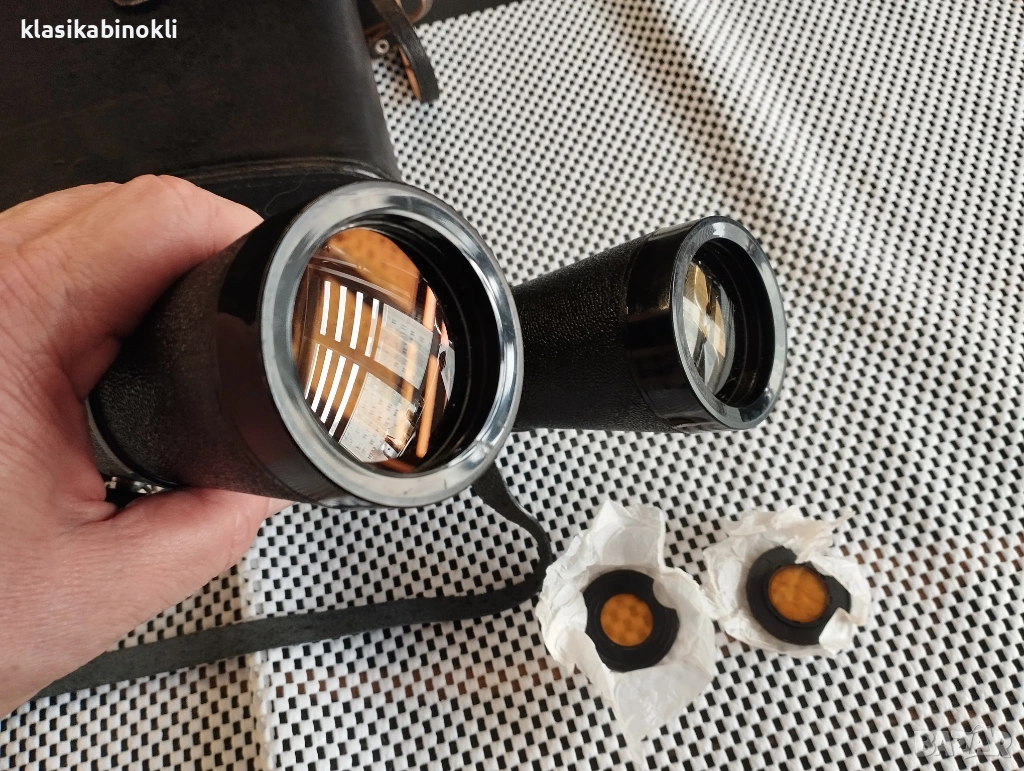Бинокълът е в комплект- ТВЪРД КОЖЕН КАЛЪФ , РЕМЪЦИ И НОВИ ОРИГИНАЛНИ ФИЛТРИ