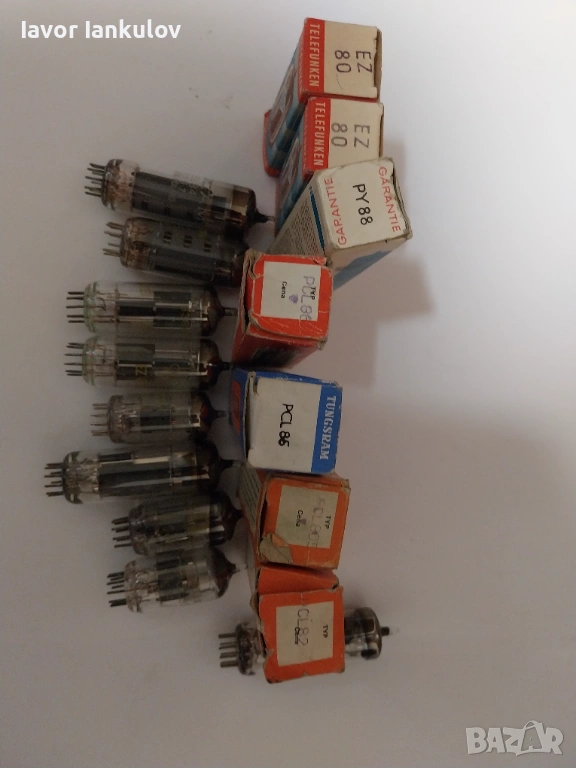 Нови радио лампи.Марки: Polam-PCL 82 1бр.,PCL 805 2бр.EL 84(3357) 1бр. EZ 802бр.ЕСС 83 1бр. RFT 819125 1бр. RFT PY88 1бр., EX EY01 1бр., Tungsram Pcl 85 1бр. , Tesla ECH81 1бр. , Tesla PCC88 1бр. Tungsram ECC 82 1бр.Telefunken EZ 80 3бр. И една бройка без марка(подарък).Общо:15+1 бройки Цена на бройка :5 евро