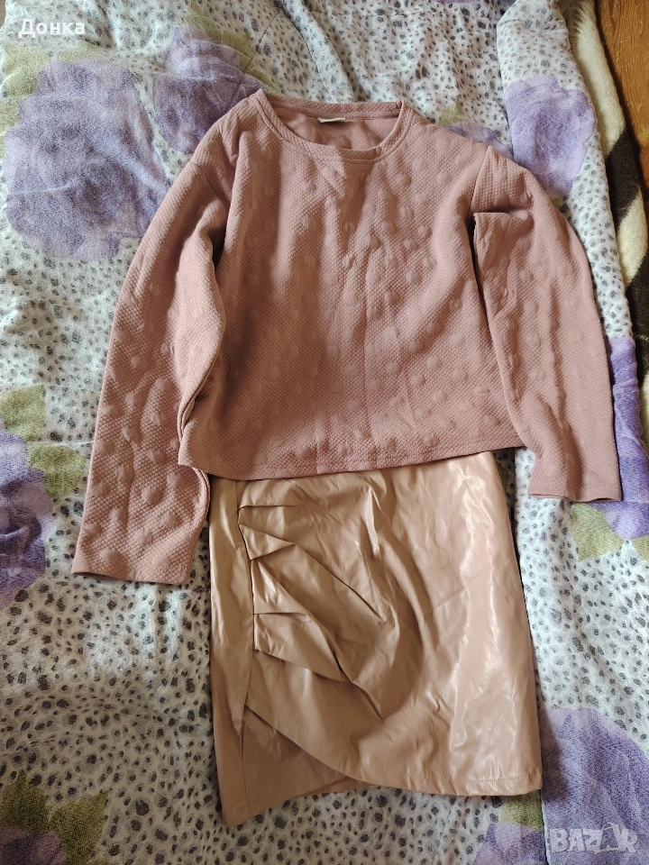 Комплект пола и блуза с дълъг ръкав размер M полата е кожена къса от страни има цип размер L