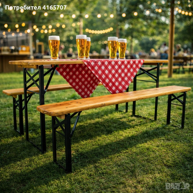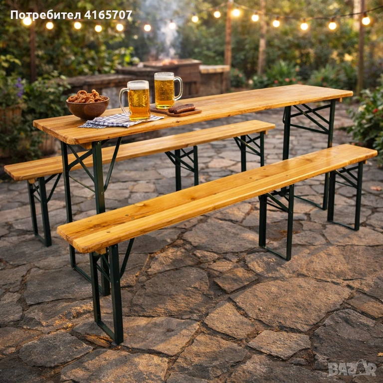 С ДЕФЕКТ - Сгъваем комплект градинска маса с 2 пейки - От чамово дърво - С ДЕФЕКТ виж снимките → Обява 53997408