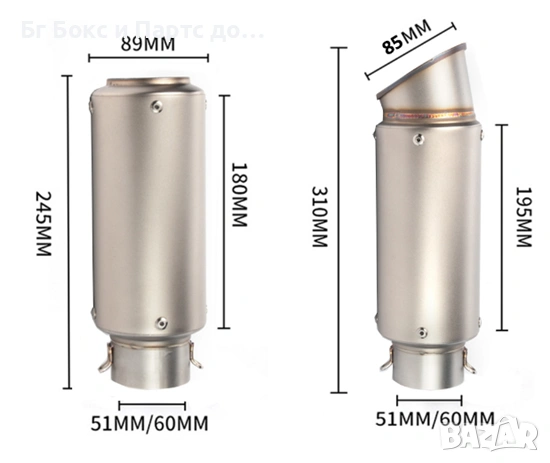 Изпускателна тръба с вход 35-51мм и 61мм дължина от 290мм до 350мм неръждаема стомана голяма издръжливост и високо качество.