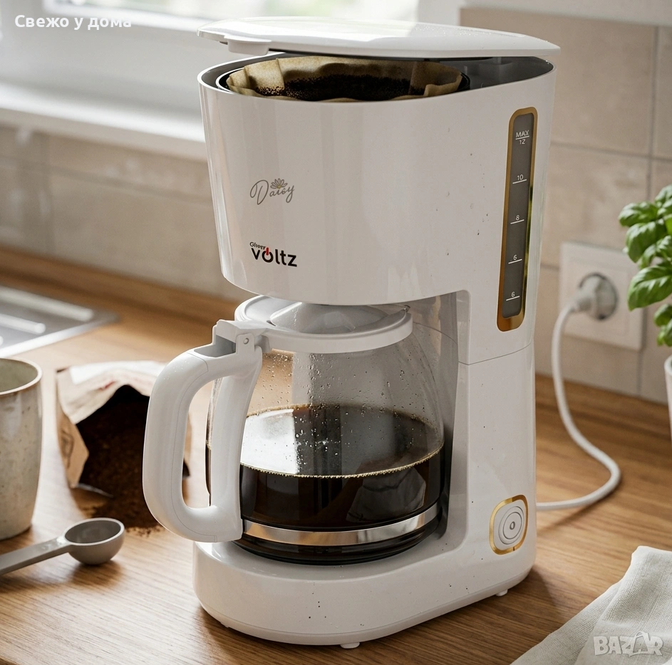 Кафемашина Oliver Voltz Daisy, 700W, 1.25 л, Светлинен индикатор -НОВА с гаранция 2 години! → Обява 53997448