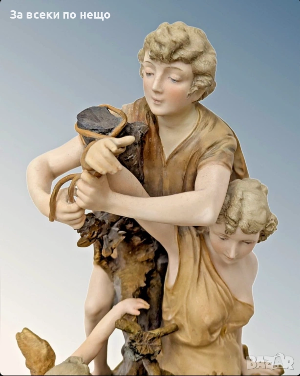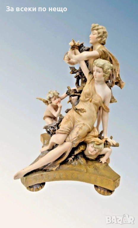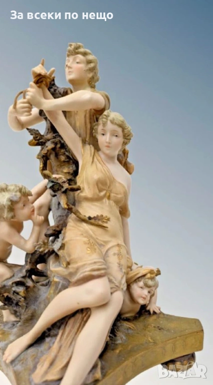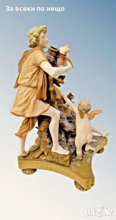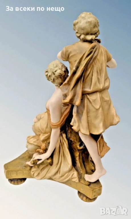 Ernst Wahliss Austria Circa 1890 “ Любовни игри “ - великолепна композиция на световно известният австрийски художник изработена със забележителна красота и финес, височина 27 см, рядък екземпляр в много добро винтидж състояние и с невероятна класа.