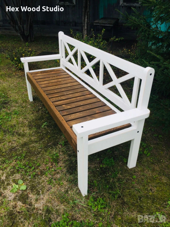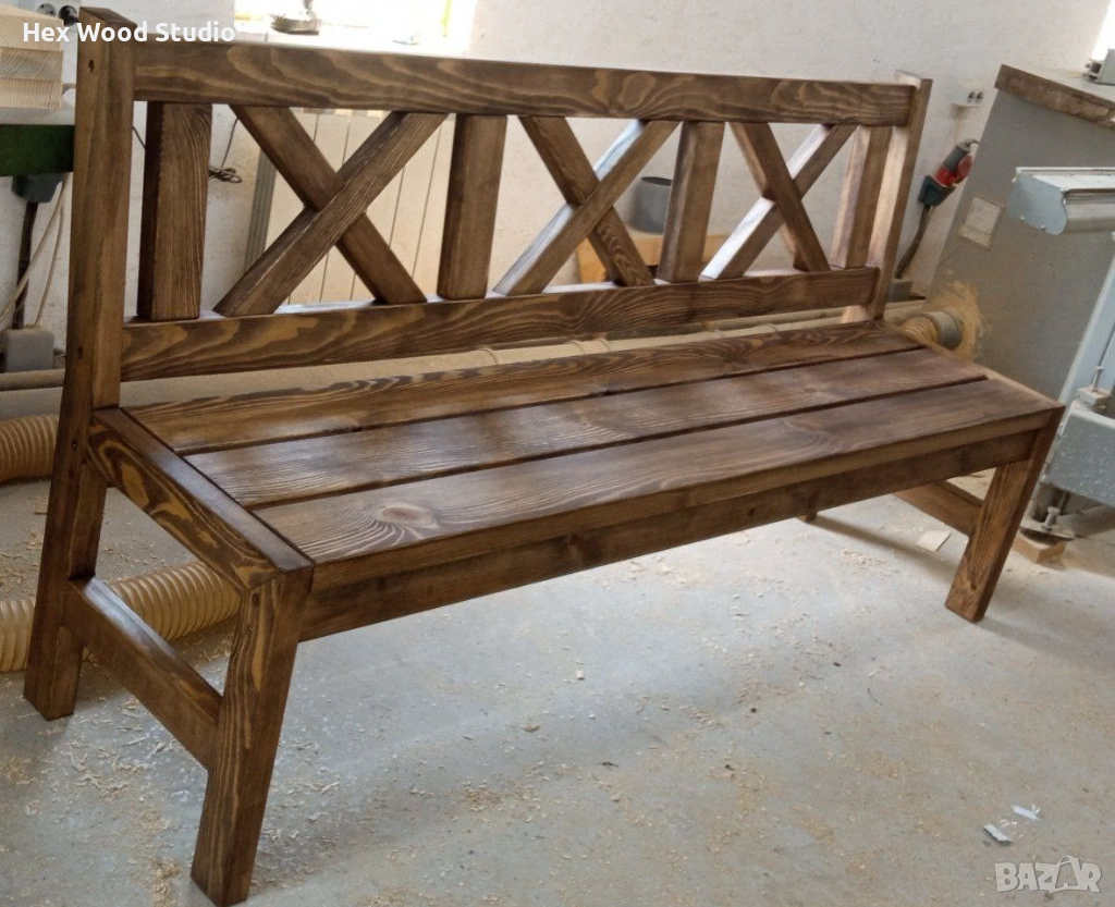 Комбинацията от плътна рамка и внимателно подредени дъски създава баланс между здравина и комфорт. Всяка линия е изчистена, всяка сглобка – премислена. Това е мебел, която стои еднакво добре както в модерен двор, така и в по-рустик среда.