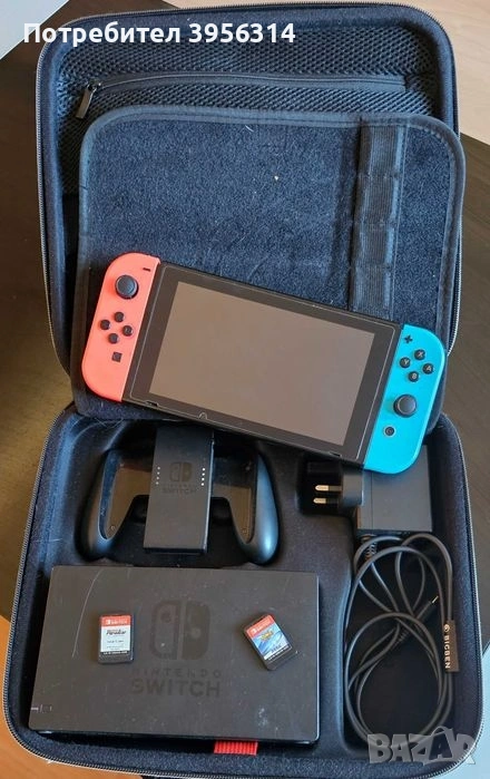 Продавам Nintendo Switch с игри и калъф. Устройството е в отлично състояние и е подходящо за любители на видео игри.