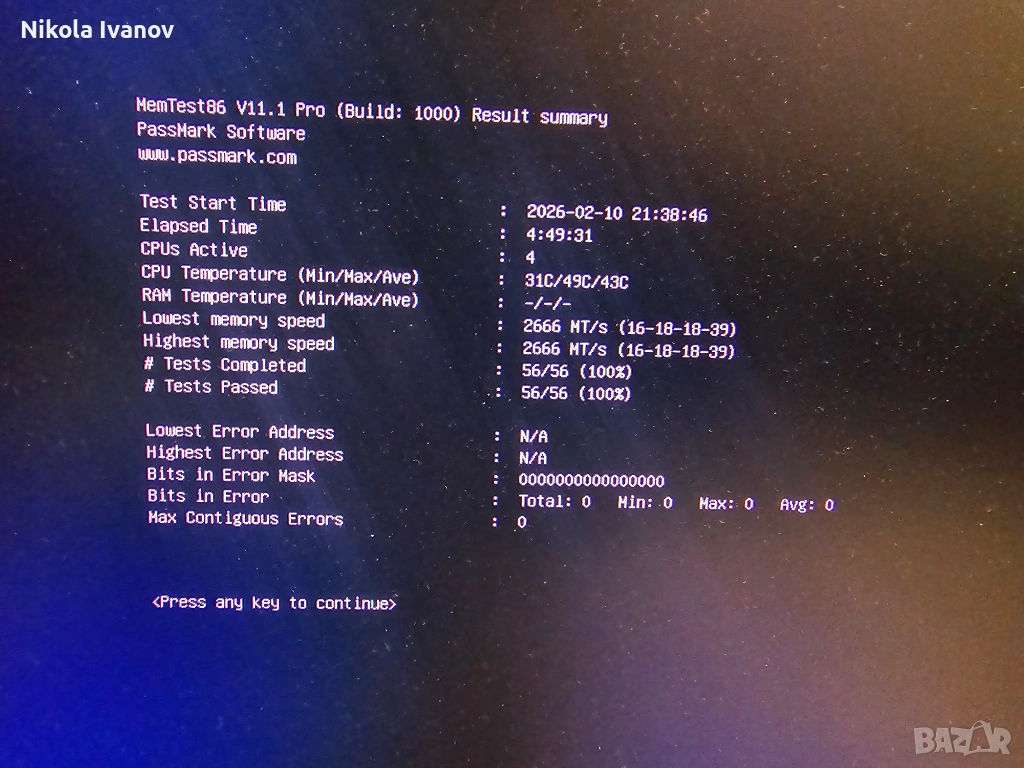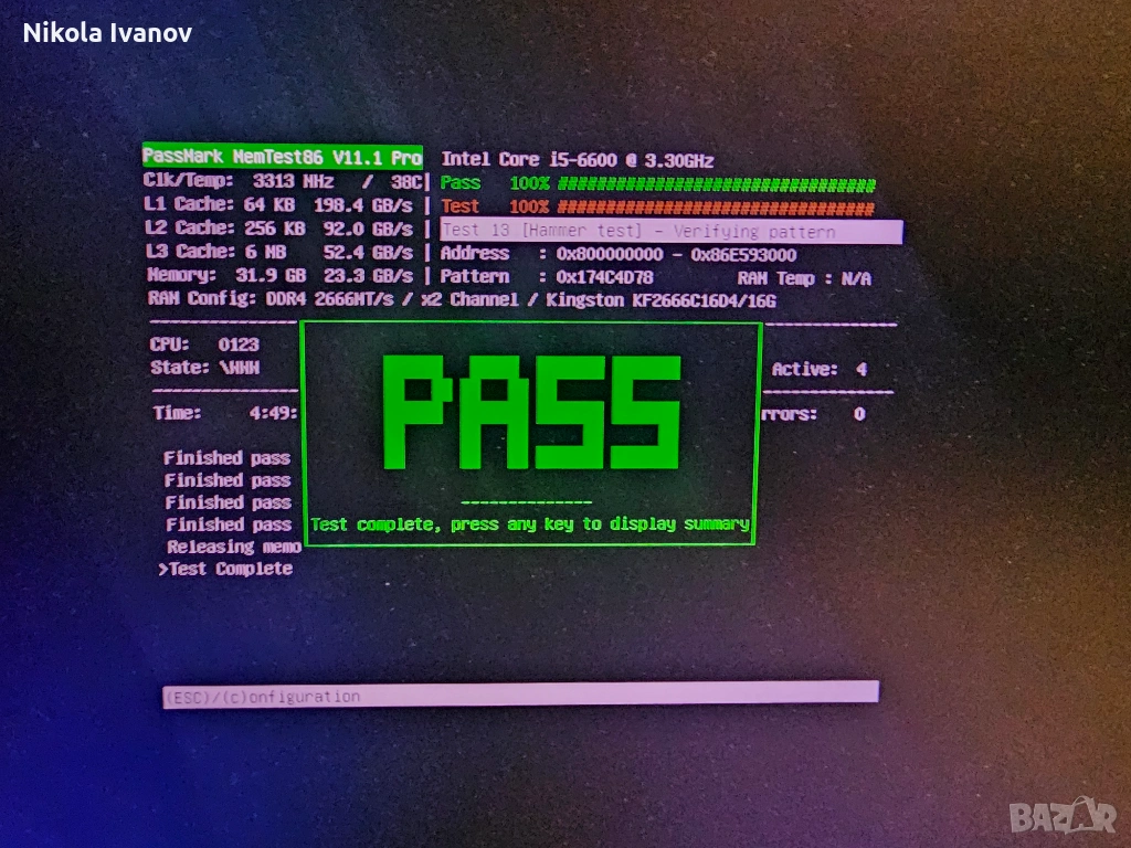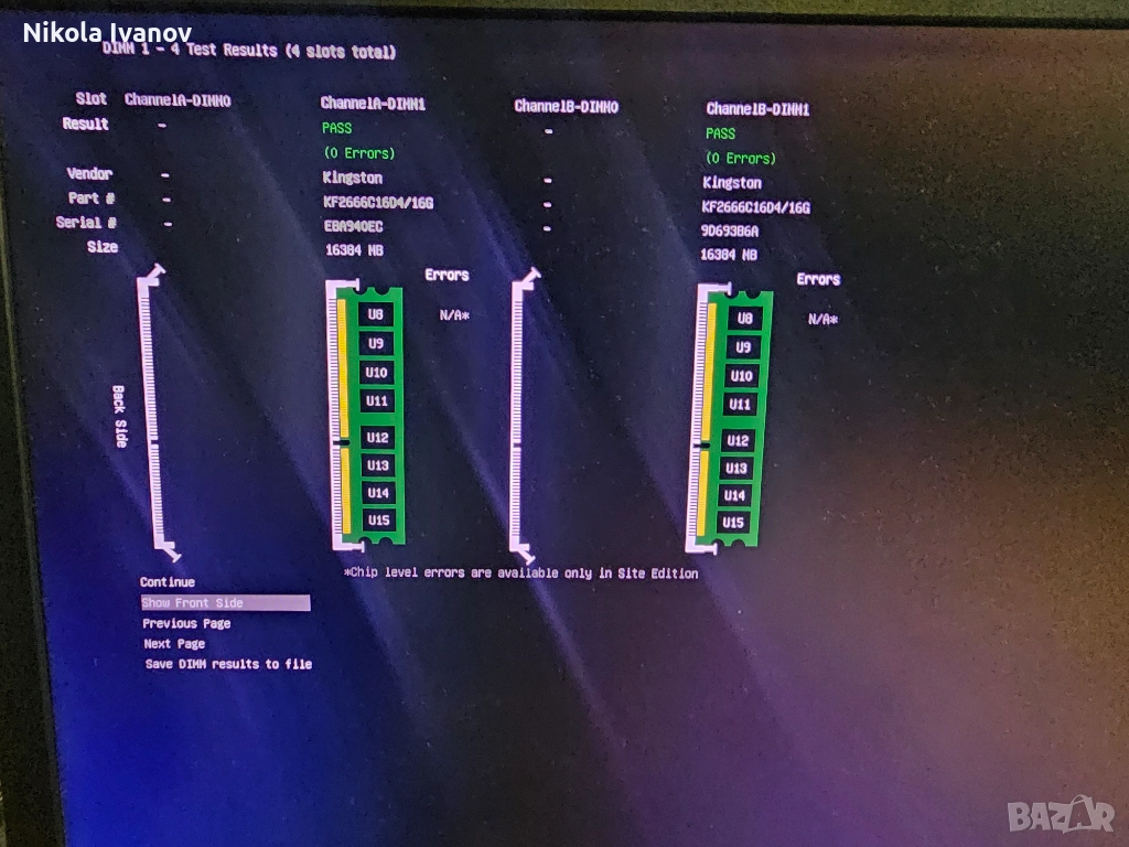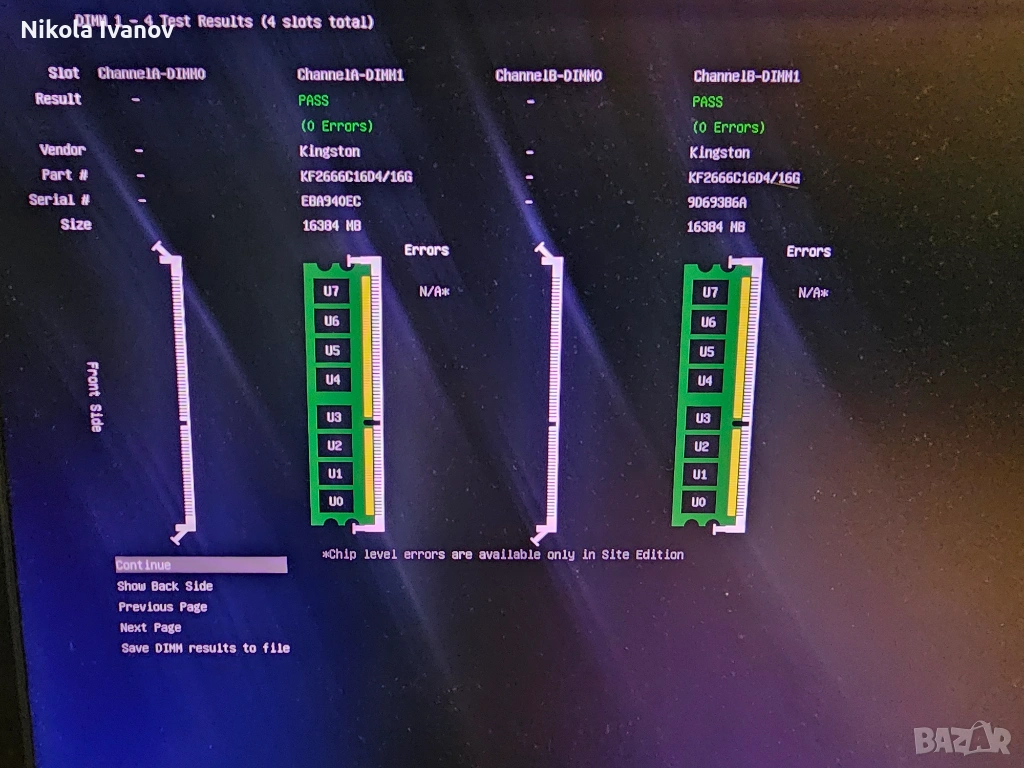 Паметта работи безупречно и е тествана с MemTest86 както се вижда на снимките.