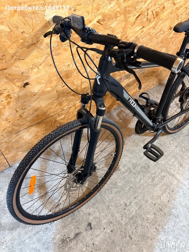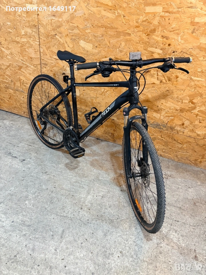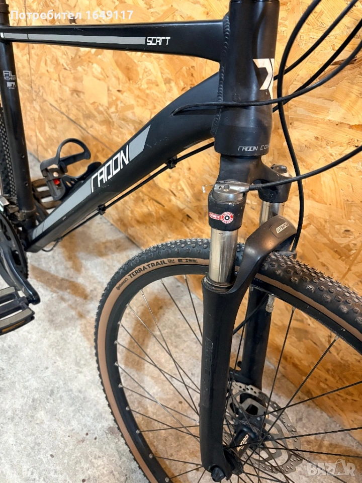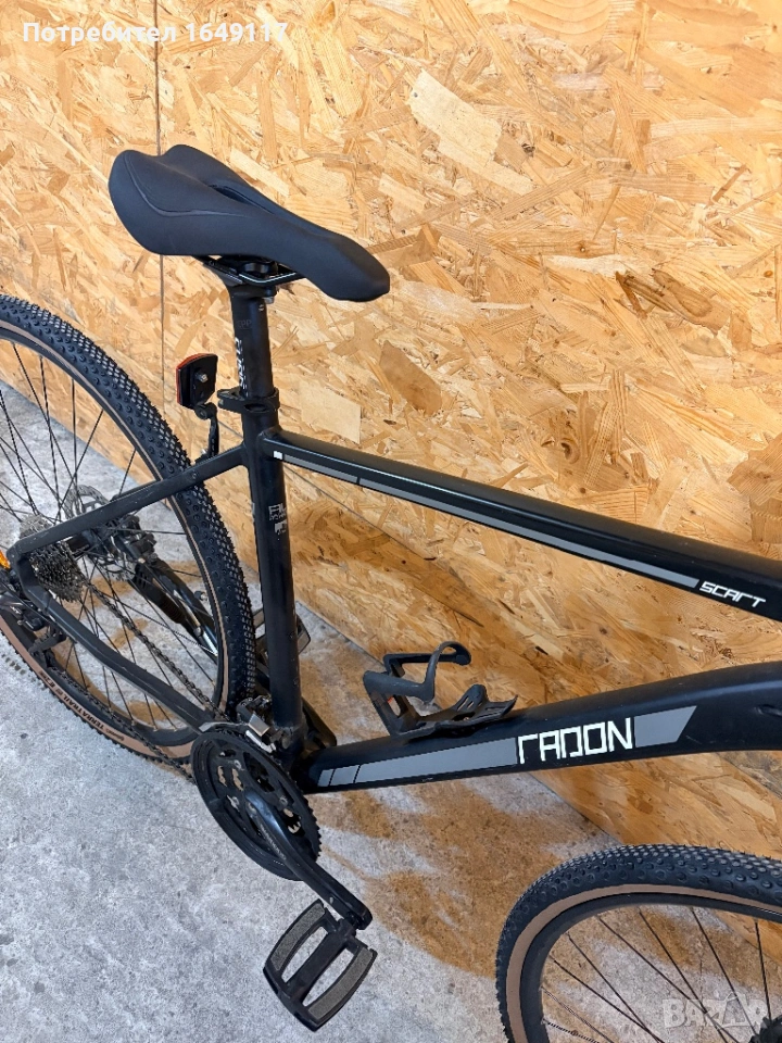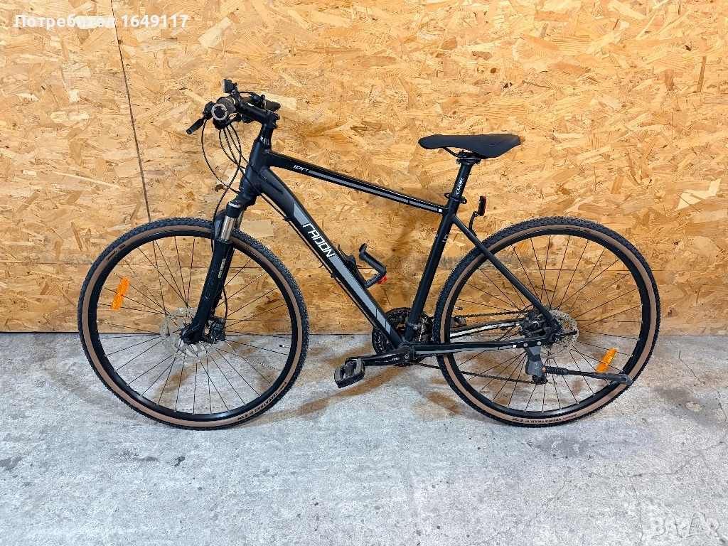 Продавам 28цола, малко употребяван хибриден градски велосипед RADON Scart[made in Germany]. Олекотена, алуминиева рамка - 52см. Външни скорости Shimano Deore XT - 3x10бр. c палцови команди Shimano Deore. Алуминиево кормило с алуминиева лапа RADON. Предна алуминиева, въздушно-амортисьорна вилка SR Suntour NCX с дистанционно заключване от кормилото. Алуминиеви курбели Shimano с платформени педали с противоплъзгащо покритие. Спортна, ергономична седалка с алуминиево колче CUBE. Алуминиеви, двойностенни капли Alex Rims EN24 с оси Shimano Deore, и монтирани чисто нови гравел гуми Continental Terra Trail. Предна и задна дискови, хидравлични спирачки Shimano. Стойка, светлоотразители, регулируема кошничка за бутилка.