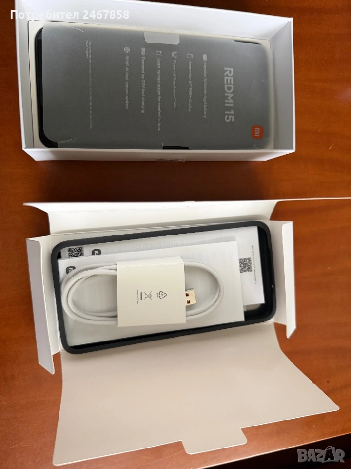 Чисто нов мобилен телефон XIAOMI REDMI 15 black 128GB в гаранция. → Обява 53998102