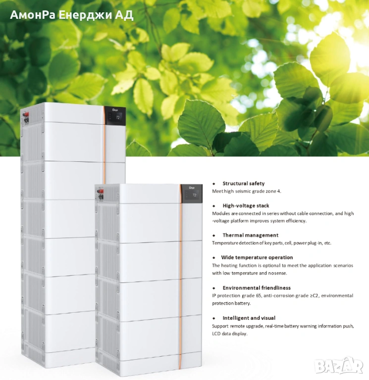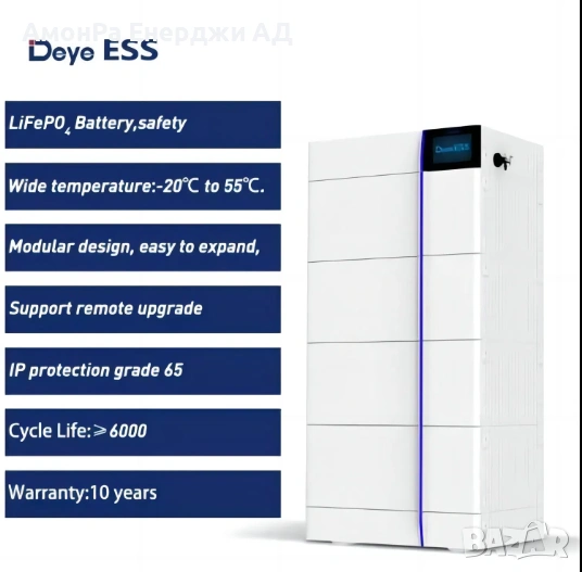 Гаранция: 10 години или ≥6000 цикъла при стандартна употреба (0.5C заряд/разряд, при 25°C и 90% DoD)