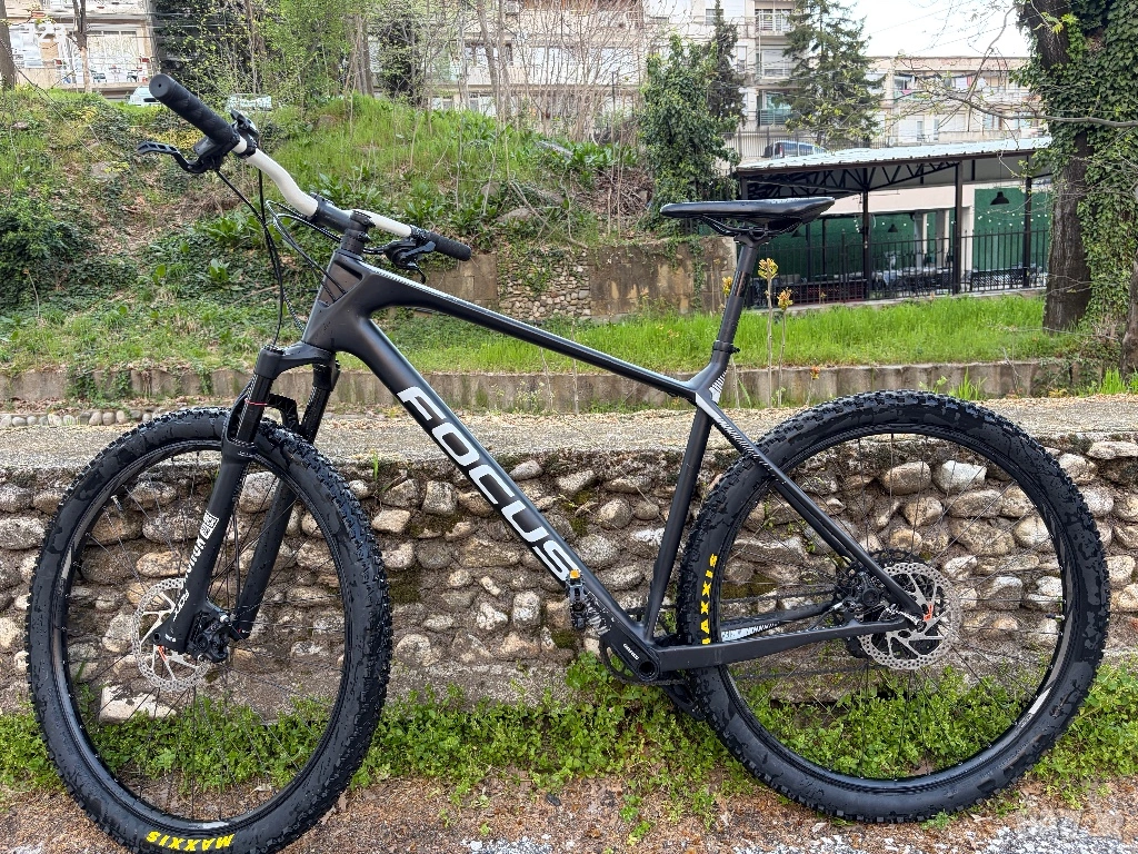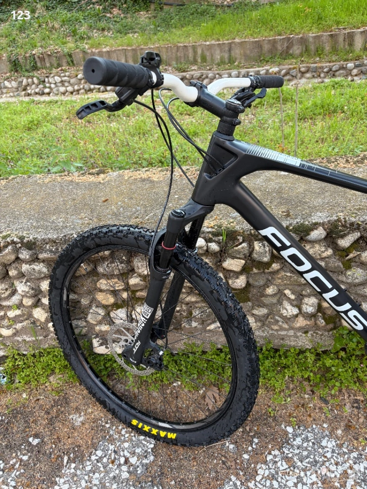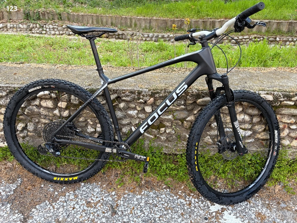 Пълни спецификации по-долу Product Focus Raven Riding Type Cross Country Rider Unisex Sizes and Geometry XL Wheel Size 29" Frame Material Carbon Fiber Frame Material Details Full carbon frame Rear Travel Hardtail Rear Shock N/A Fork RockShox Judy Gold, OneLoc remote, 15x110mm Fork Travel 100mm Head Tube Diameter Tapered, top: 1.125'', bottom: 1.5'' Headset Handlebar BBB aluminum flatbar, 720mm width, 0mm rise, 9° backsweep Stem BBB race, 31.8mm diameter Grips Focus SL Brakes Magura MT2 Plus with 180mm rotors Brake Levers Magura MT2 Drivetrain 1x Shifters SRAM NX Eagle 12- speed Front Derailleur N/A Rear Derailleur SRAM NX Eagle 12- speed ISCG Tabs None Chainguide N/A Cranks SRAM NX Eagle DUB Chainrings 32 tooth direct mount Bottom Bracket BB30, pressfit Pedals N/A Chain SRAM NX Eagle 12-speed Cassette SRAM PG-1230 12-speed, 11-50 tooth Rims Rodi Viper 21 Hubs Novatec, Boost148 Spokes Tires Schwalbe Racing Ralph, Performance, 29x2.25'' Saddle Focus Race SL Seatpost BBB aluminum Seatpost Diameter 27.2mm Seatpost Clamp Standard single-bolt Rear Dropout / Hub Dimensions 12x148mm Max. Tire Size 29x2.3'' Bottle Cage Mounts Yes Colors Black/white Tag: Scott Canyon Santa Cruz Cube Radon Ghost Trek Merida Oryx Drag Cross Sprint