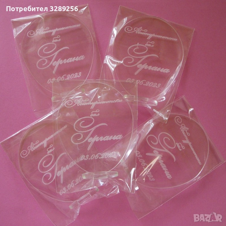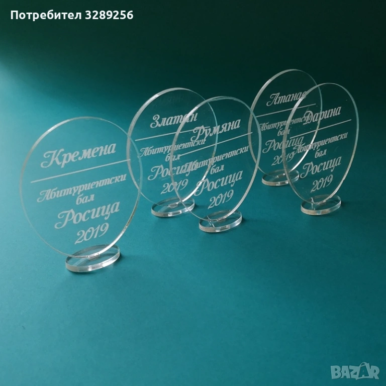 Изработена от прозрачен плексиглас в размер 6,5/7,5см .