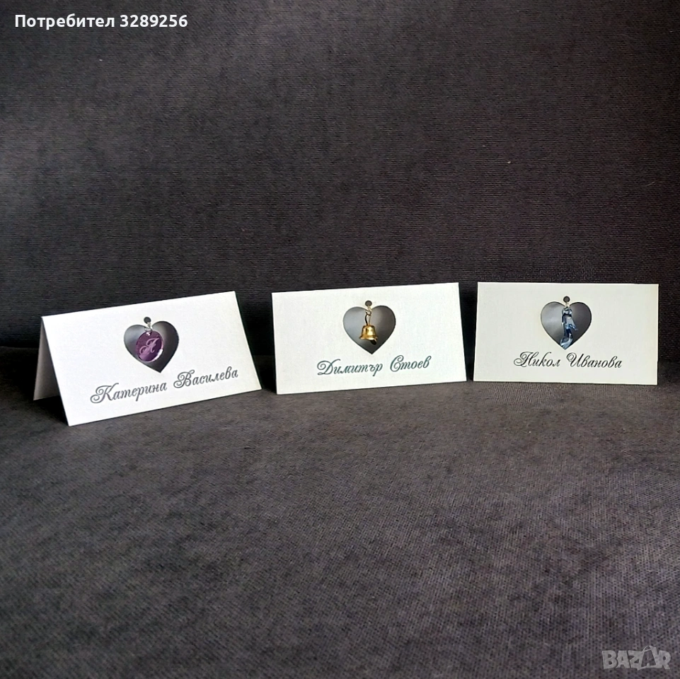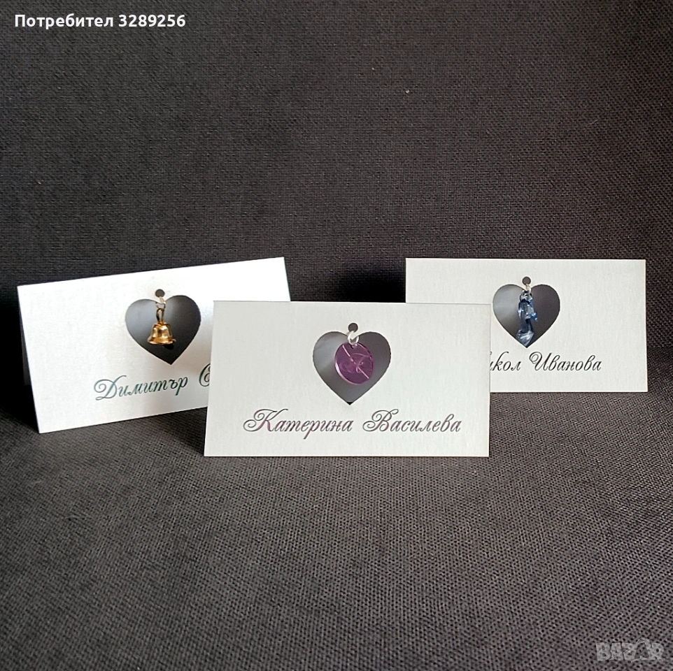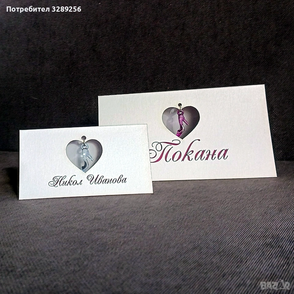 Перлен картон в цвят по избор. Висулка по избор.