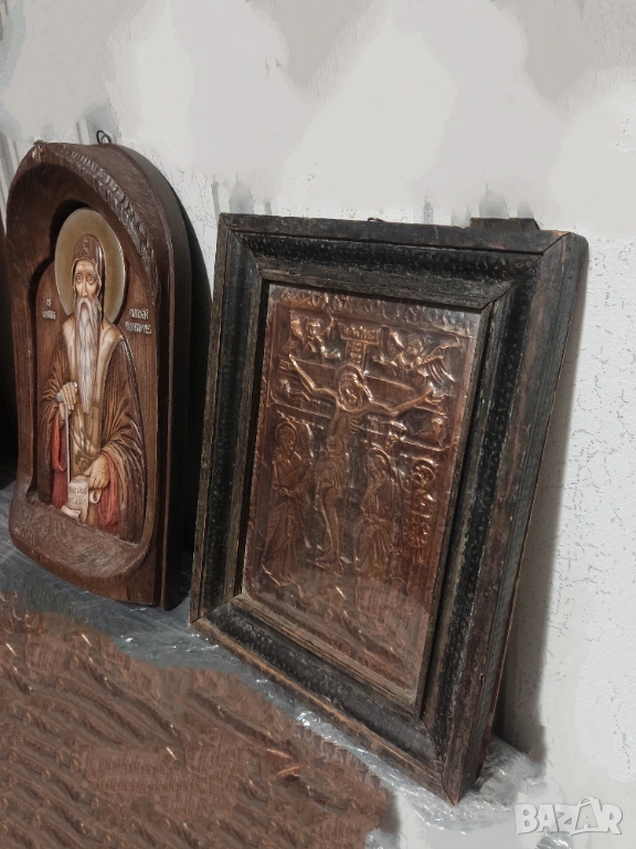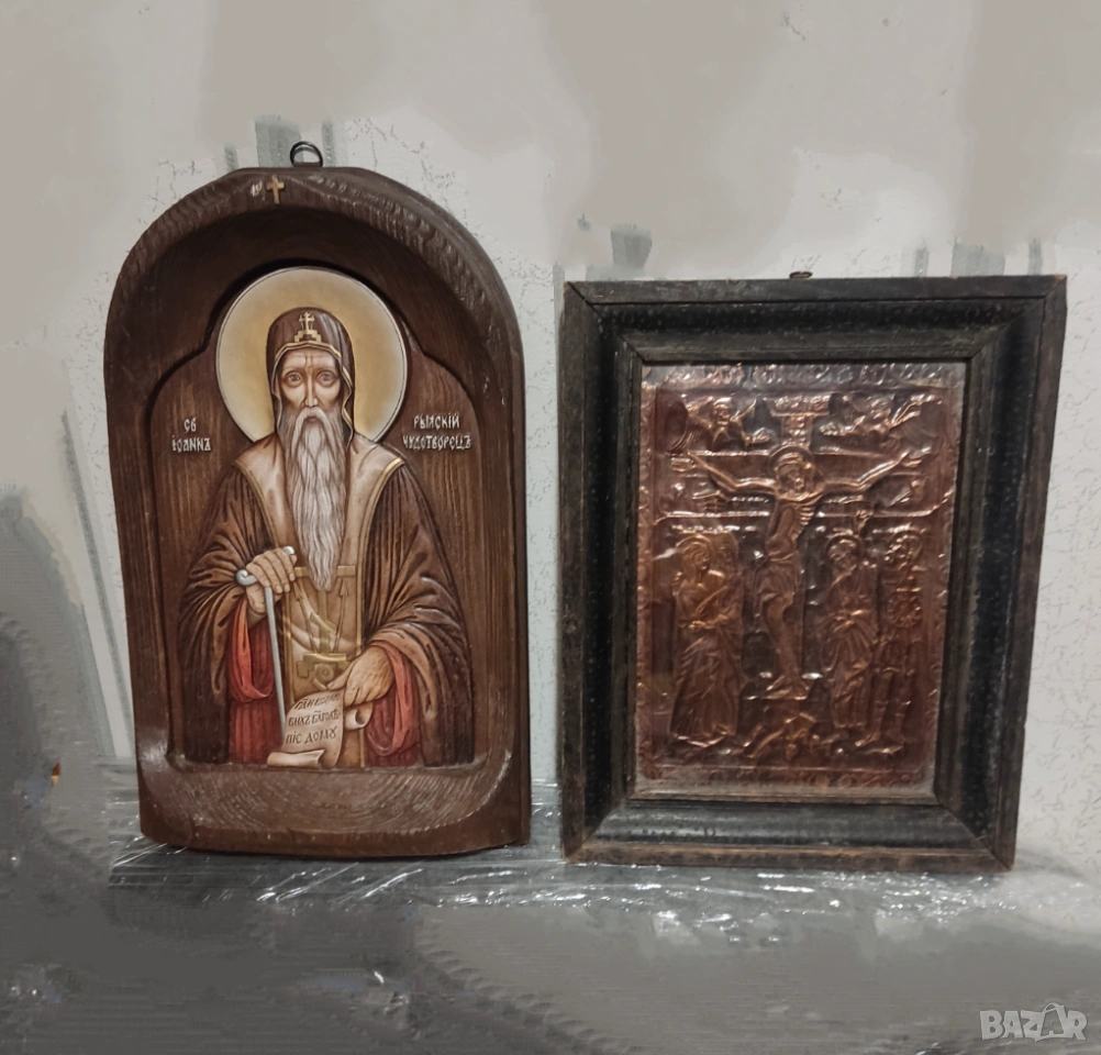 ПРОМО-2 големи икони-медна Разпятие Христово и дървена ръчно рисувана-Св.Иван Рилски 37/23 → Обява 53998835