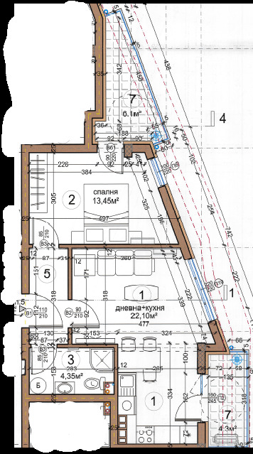 🔷 Квадратура: ЗП - 63.20 кв.м. РЗП - 79.95 кв.м.