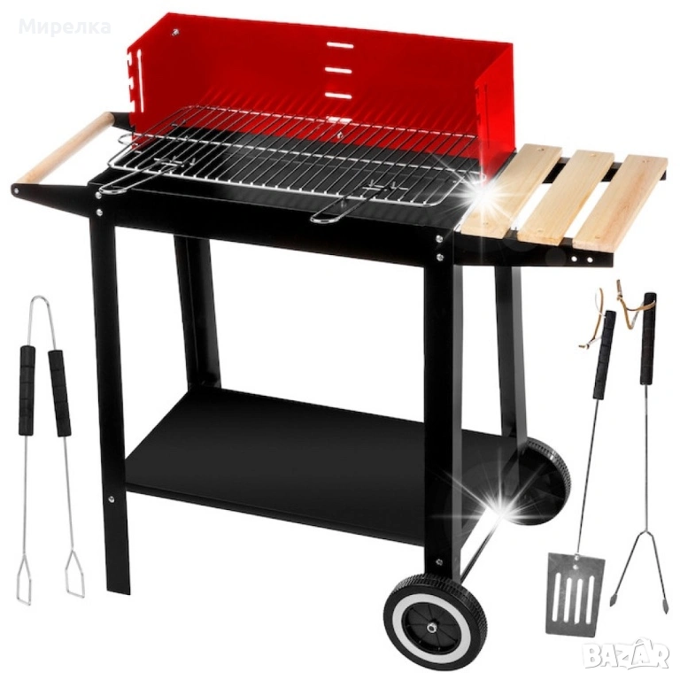 Градинско барбекю на колела, емайлирана стомана, 4 степени + Подарък 3 прибора → Обява 53998882