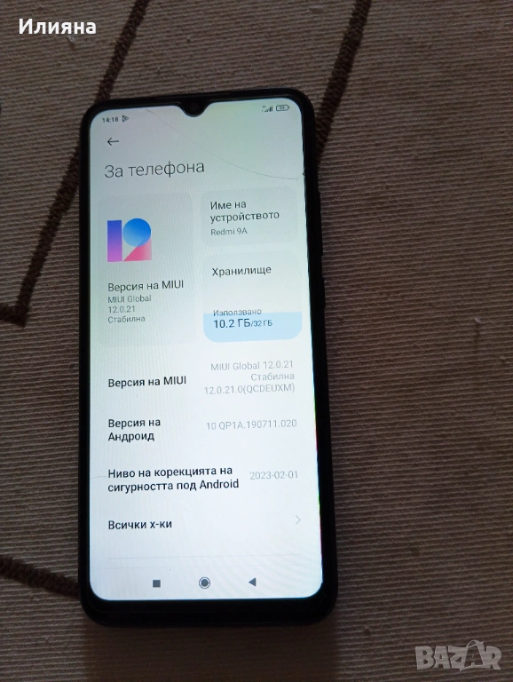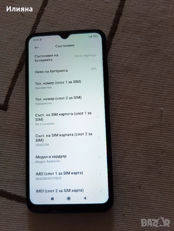 Продавам телефон Redmi 9A,работещ идеално,с протектор на дисплея.